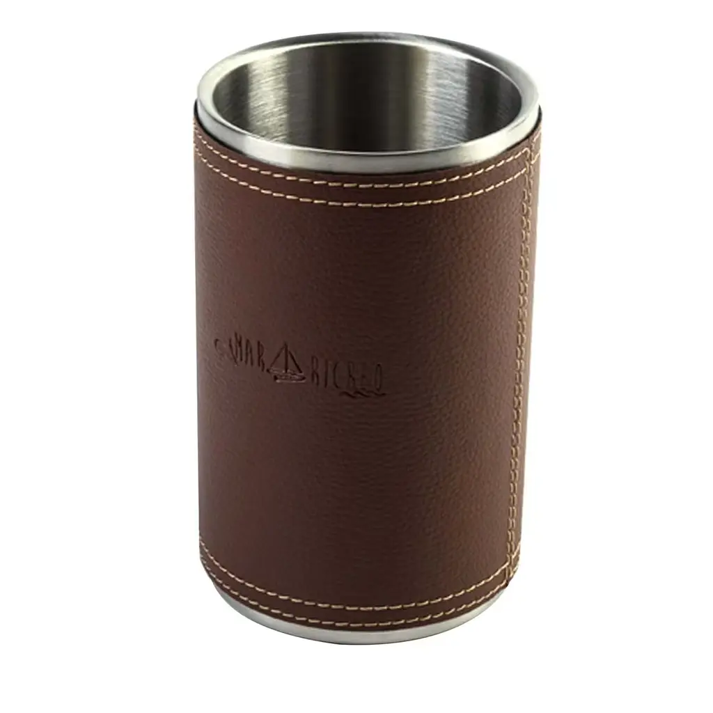Part of the B-Bottle series of thermal bottles by Casa Bugatti, this design is timeless and sophisticated: merging gold and black shades, it is fashioned of stainless steel and covered with handmade leather upholstery. With a capacity of 250 ml, it will last 12 hours hot, 24 hours cold, and 36 hours if iced.