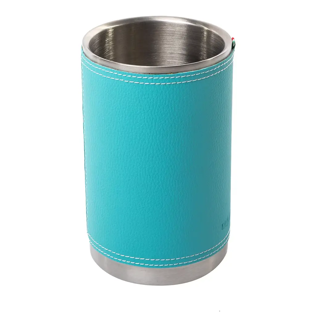 A singular, iconic piece from the B-Bottle series by Casa Bugatti, this thermal bottle's distinctive feature is the blue denim upholstery, handmade by Italian artisans and showcasing elegant white stitchings. Made of matte blue-lacquered stainless steel and completed with a natural-finished cap, its 500 ml-capacious silhouette will keep liquids hot for 12 hours, cold for 24 hours, and iced for 36 hours.