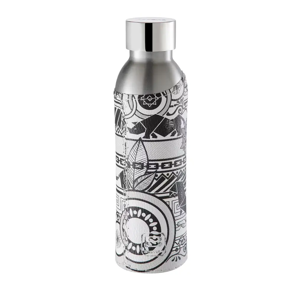 A gorgeous piece from the B-bottle series of thermal bottles, this stylish, timeless design is distinguished by a total-silver look comprised of a brushed stainless steel body and a silver-colored leather upholstery. Handcrafted by Italian artisans, the upholstery is enhanced with a devoré texture of captivating flair. This thermal bottle has a capacity of 500 ml and will last 12 hours hot, 24 hours cold, and 36 hours iced.