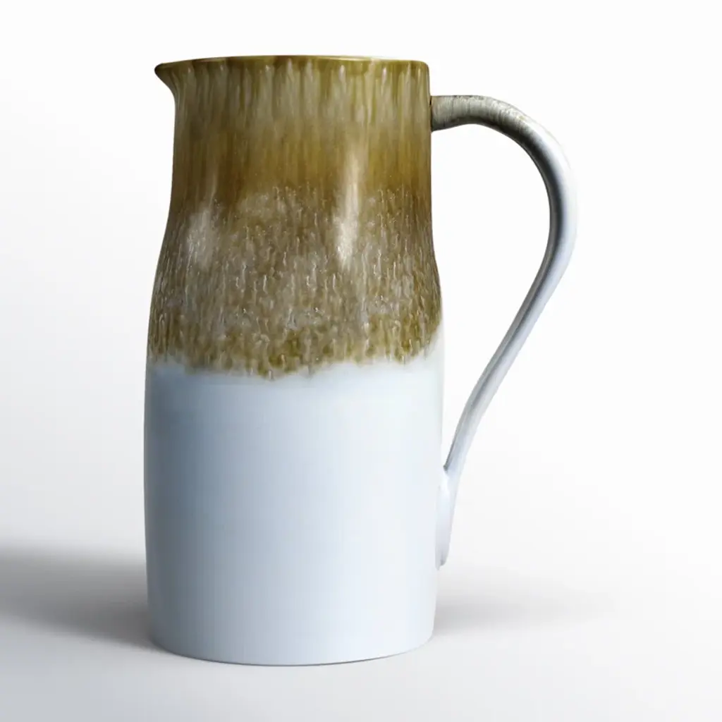 Complementing rustic-chic tables with a design capable of ensuring coherence and uniqueness is the idea behind this one-of-a-kind artisan ceramic pitcher. The deft manual decorating process is attested by the signs of secure bricked brushstrokes impressed on the pitcher, its quiet silhouette completed by a darker handle. Please explore the Babi Collection in the Artemest catalog.