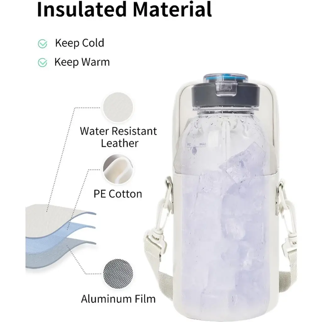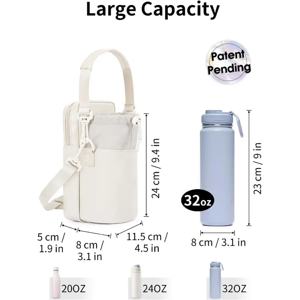 Babyyer Water Bottle Holder With Strap 32oz Insulated Water Bottle Carrier Sling Bag (White)