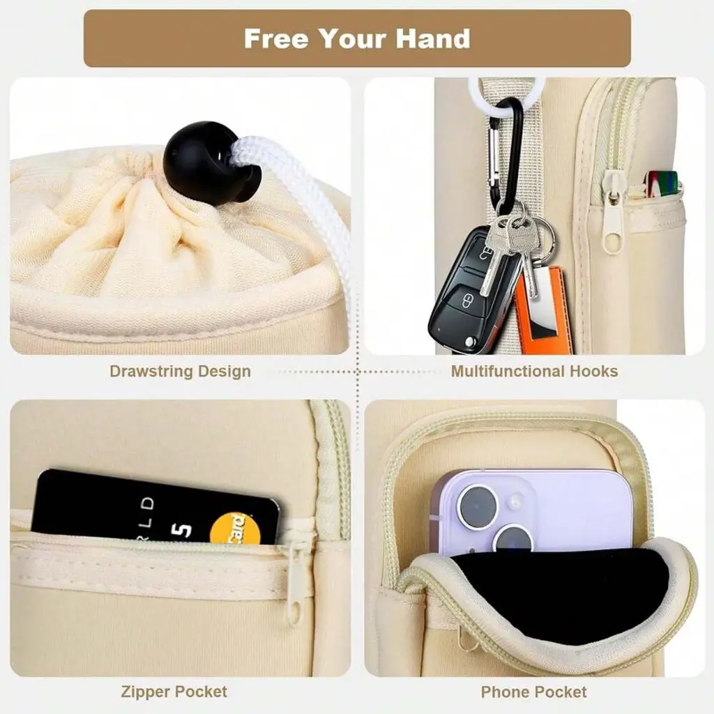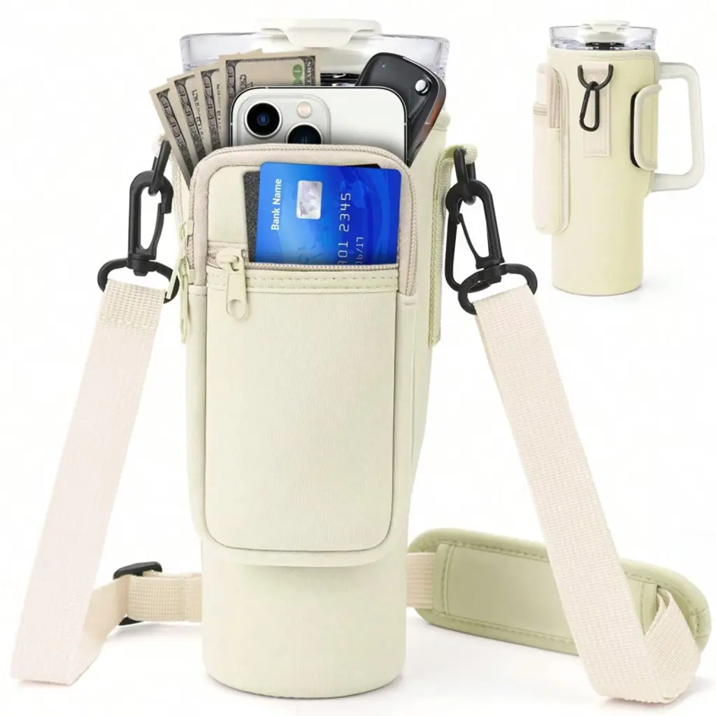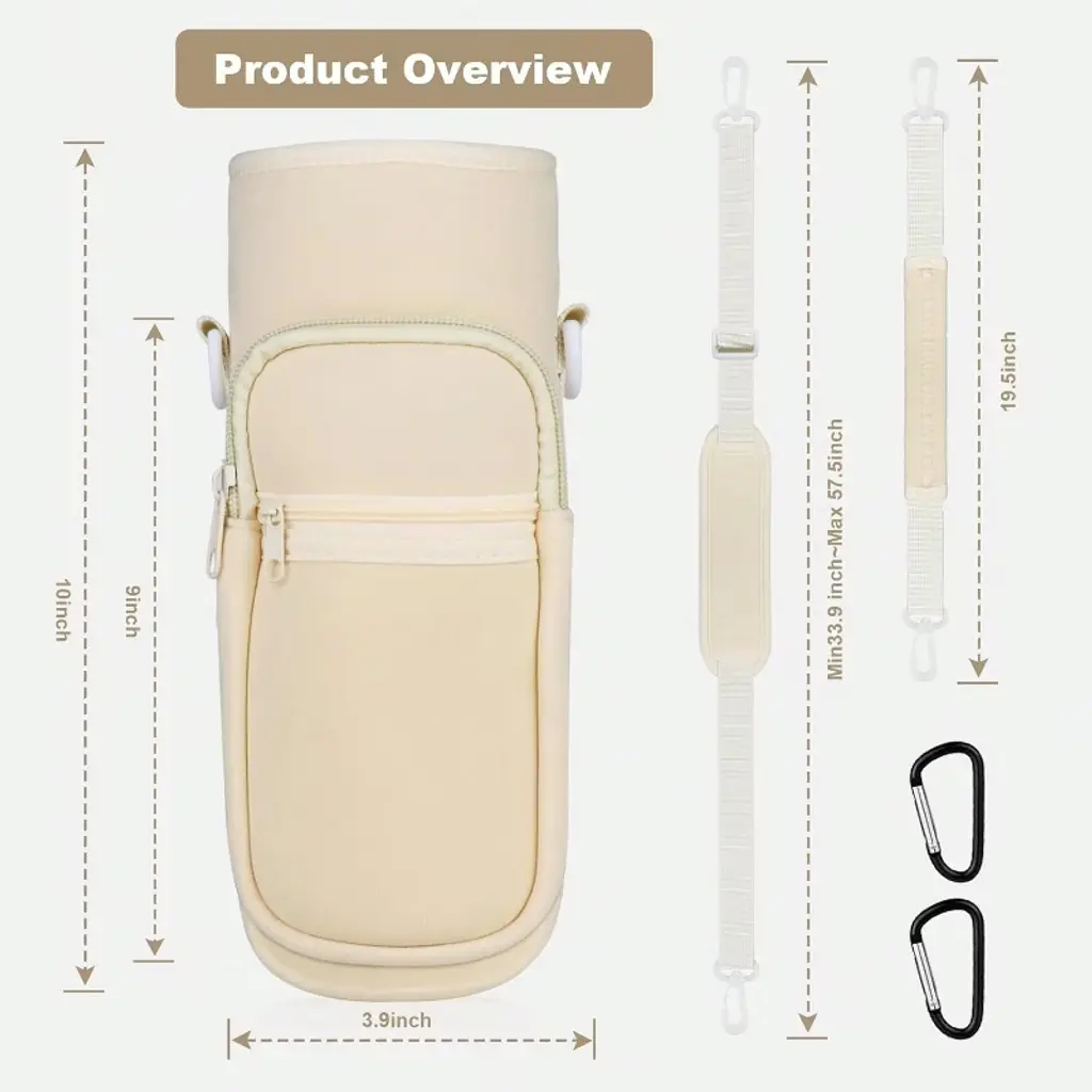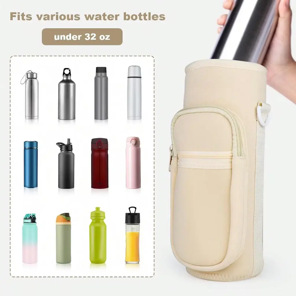 Babyyer Water Bottle Holder With Strap, Water Bottle Carrier Bag With Phone Pocket, Shoulder Hand Strap Insulated Neoprene 32oz (Beige)