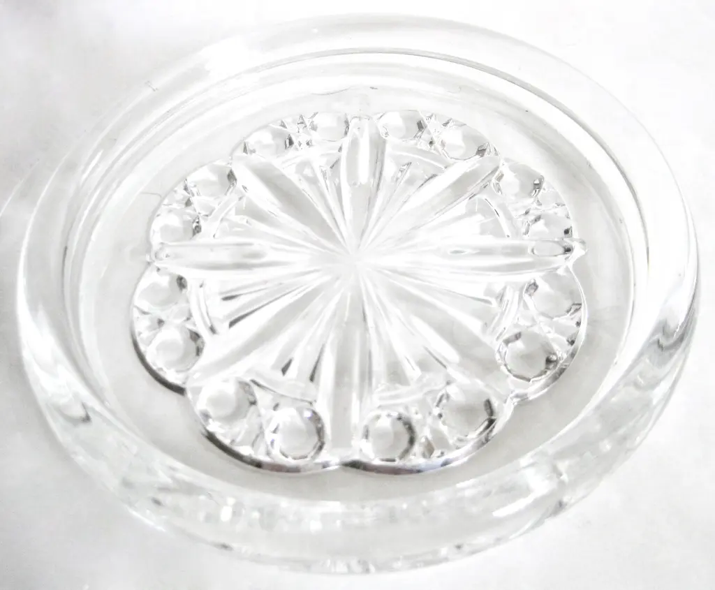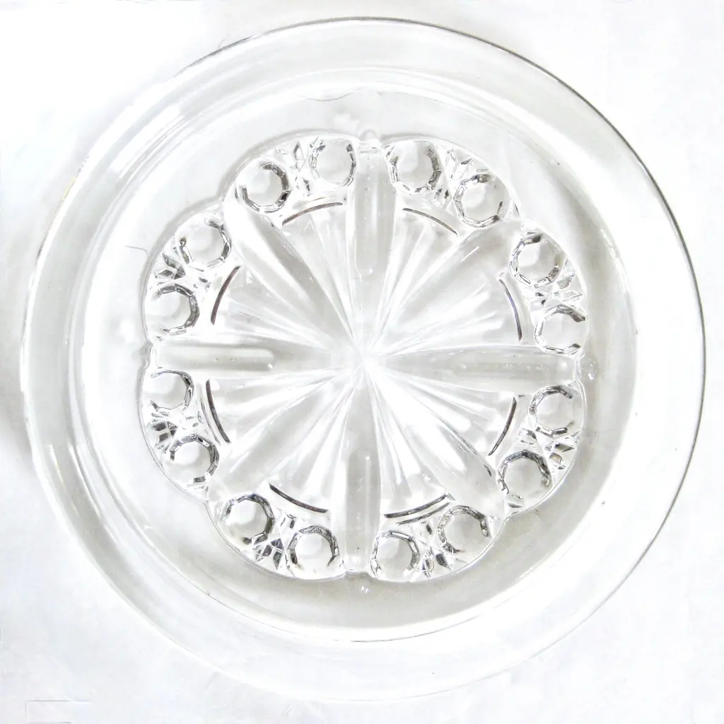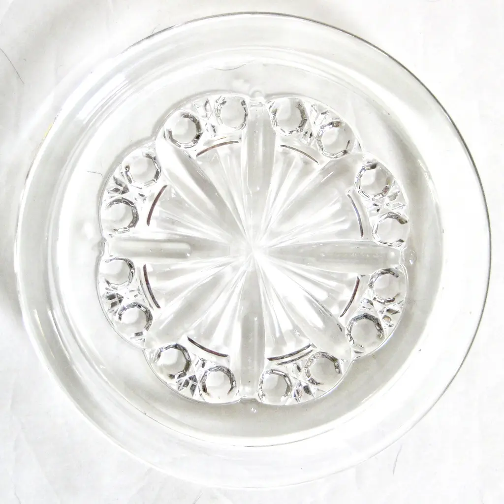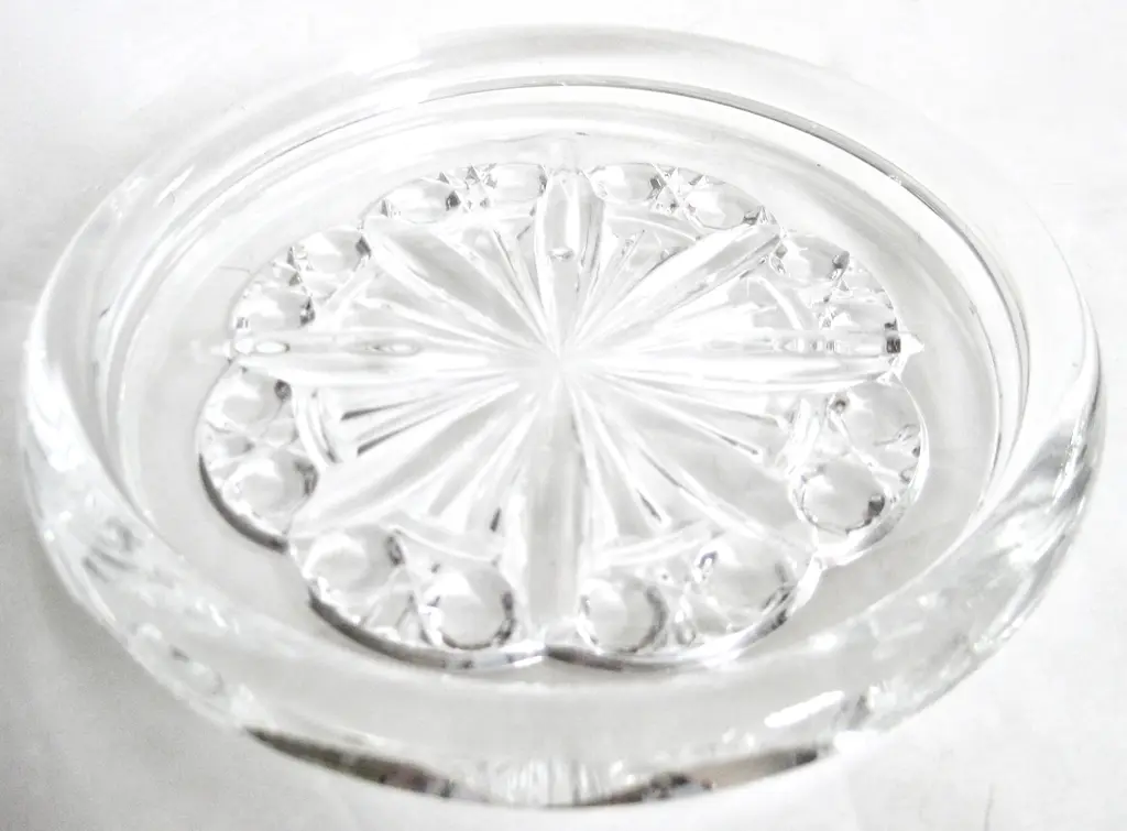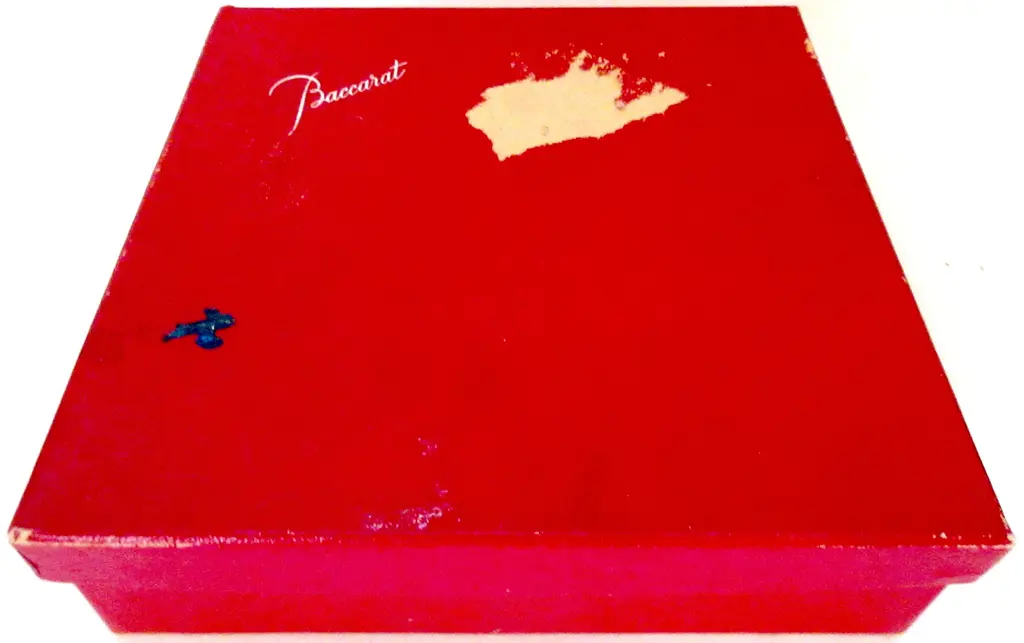 Baccarat French crystal wine bottle coaster in the Rosace design evoking a stained glass cathedral window, inspired by the stunning windows of Notre Dame. Presented with its quite age-worn red Baccarat box. Marked “Baccarat France.”