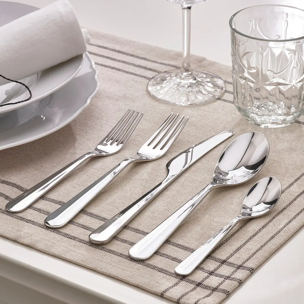 BÄCKÖRING 20-piece flatware set - stainless steel. Includes: Fork, knife, spoon and teaspoon, 4 of each.