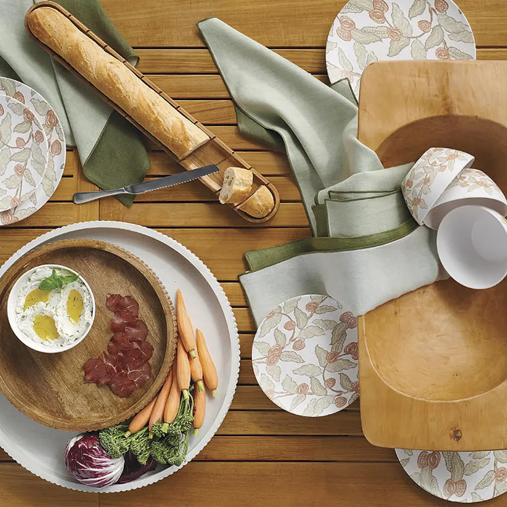 Made of oak wood, this distinctive board fits the size of a baguette loaf and comes with grooves for even slices and a high-quality stainless steel bread knife to do the slicing. Handcrafted in Portugal by skilled artisans, premium quality oak is coated with food-safe oil to bring out the wood's natural grain and colors. This durable and handy combination is great for nightly gatherings around the table or as a special gift. Oak wood board High-quality stainless steel knife Handcrafted Scratch resistant Wipe with a soft, damp cloth; hand wash recommended Made in Portugal Due to the natural variations inherent in the materials of this handcrafted product, no two are exactly alike At Frontgate, our primary focus is quality. We guarantee that every product we sell will stand up to the supreme test – our customers' satisfaction. To learn more about our policies, visit our Shipping & Processing, Returns & Exchanges and Warranty & Price Guarantee pages.