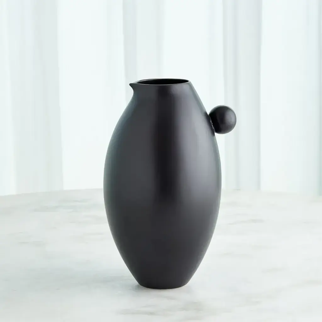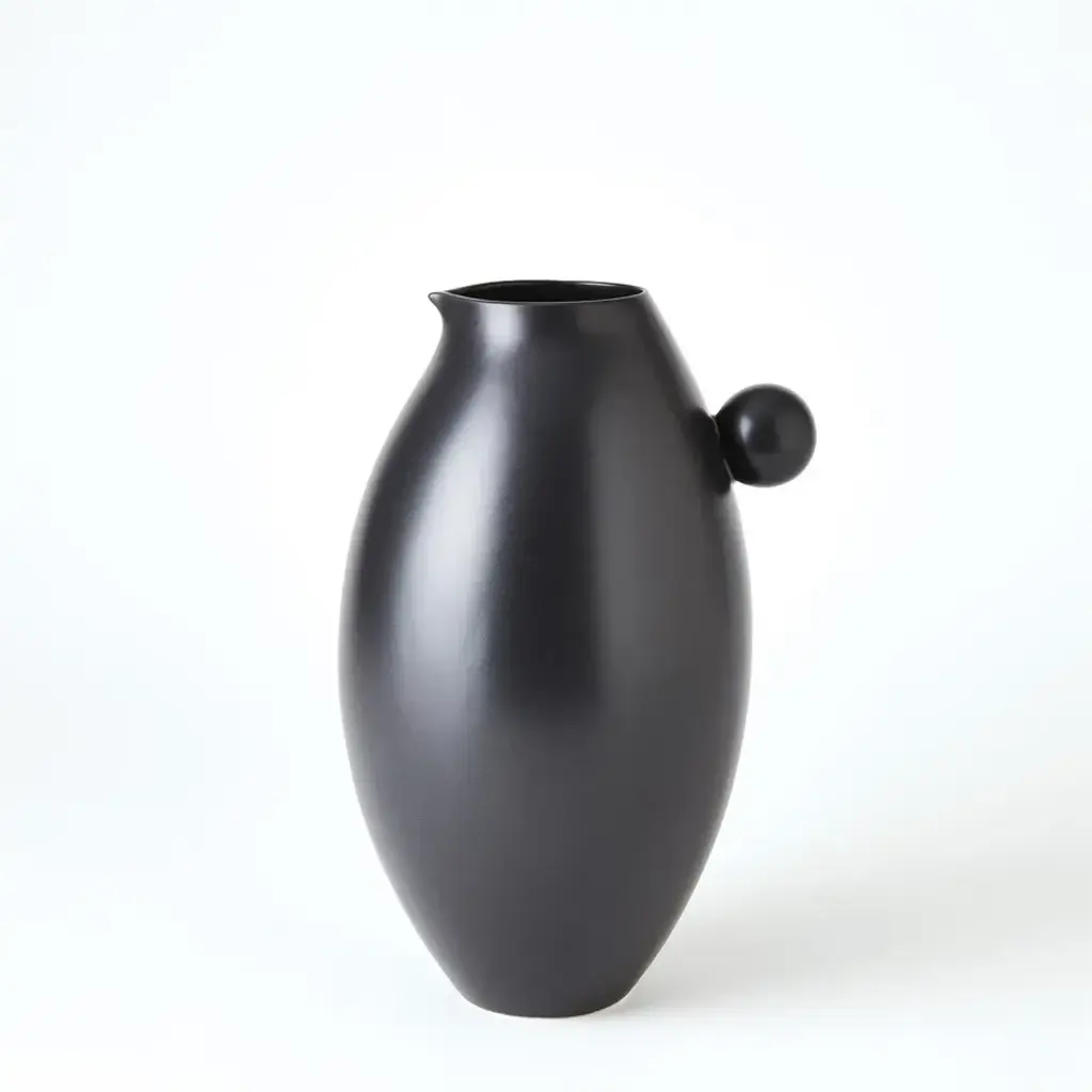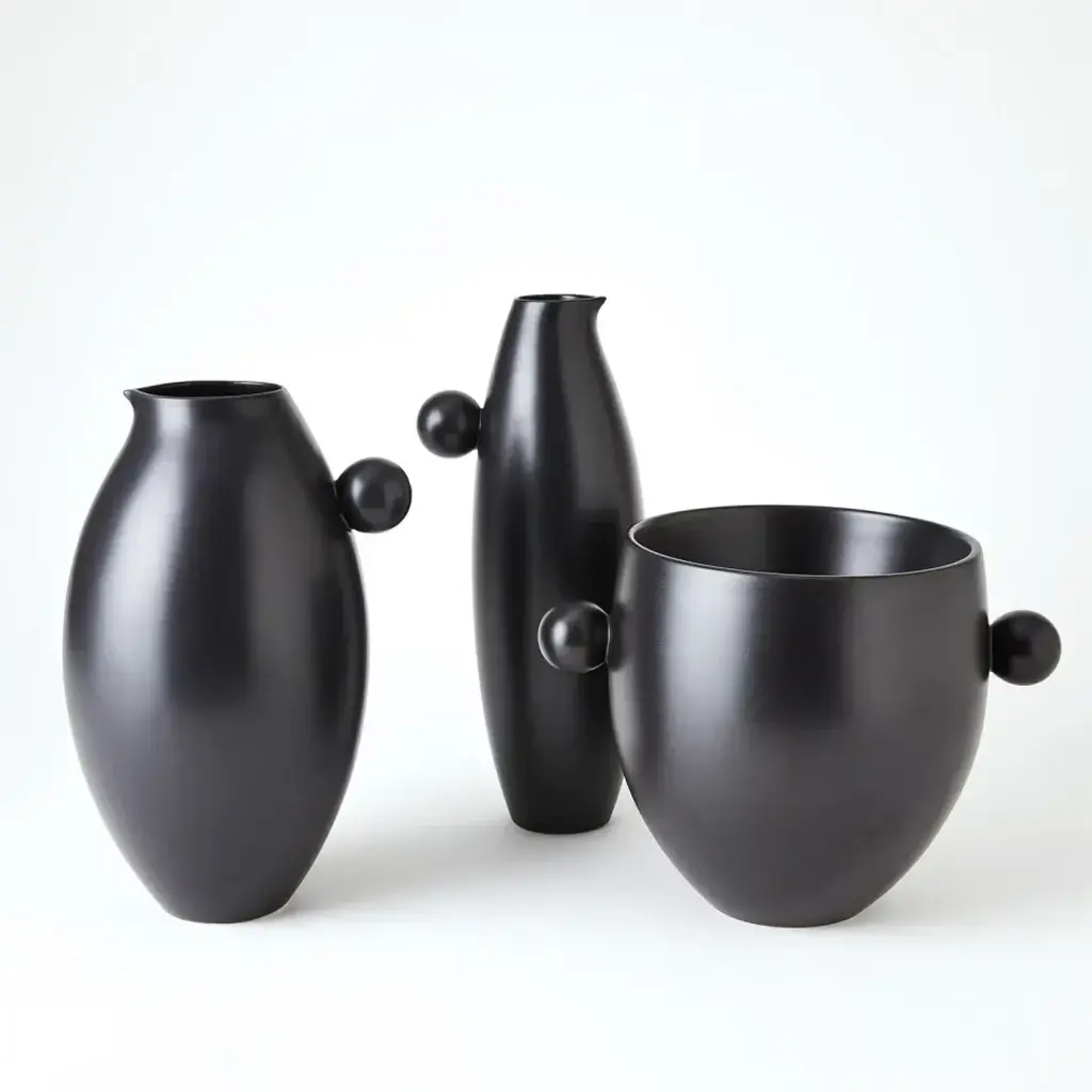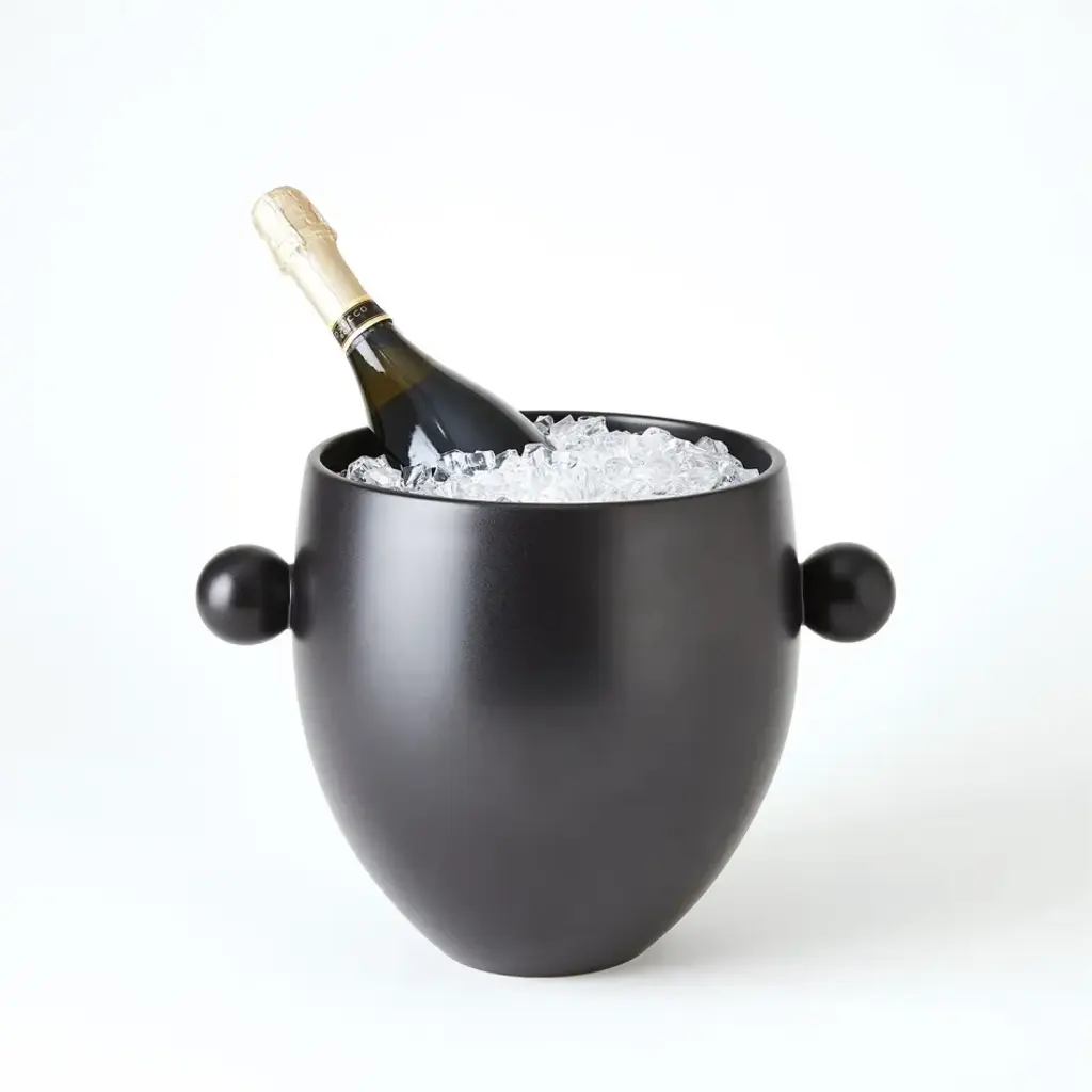 The Ball Handled Collection is crafted of Portuguese ceramic with a matte black glaze. The ice bucket has double-wall construction to prevent external condensation. Cold beverages only. Food safe. From a fashion forward perspective, Global Views offers accessories, furniture, statement lighting, and an assortment of rugs and mirrors to add beauty and joy to your home.