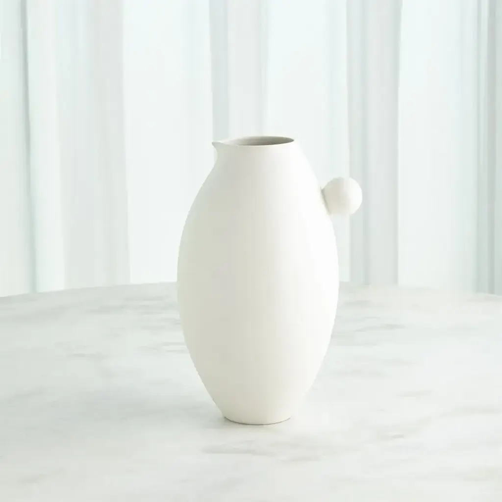 The Ball Handled Collection is crafted of Portuguese ceramic with a matte white glaze. The ice bucket has double-wall construction to prevent external condensation. Cold beverages only. Food safe. From a fashion forward perspective, Global Views offers accessories, furniture, statement lighting, and an assortment of rugs and mirrors to add beauty and joy to your home.