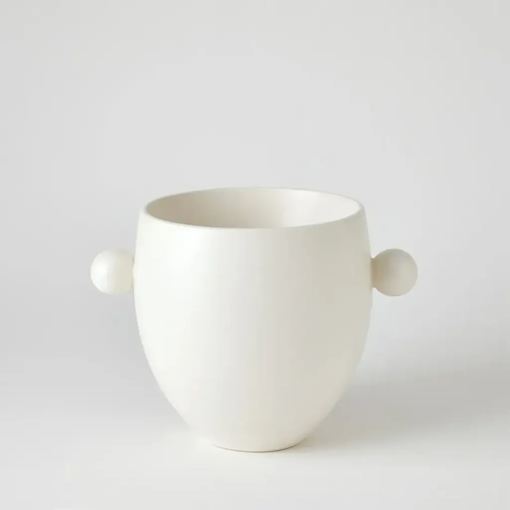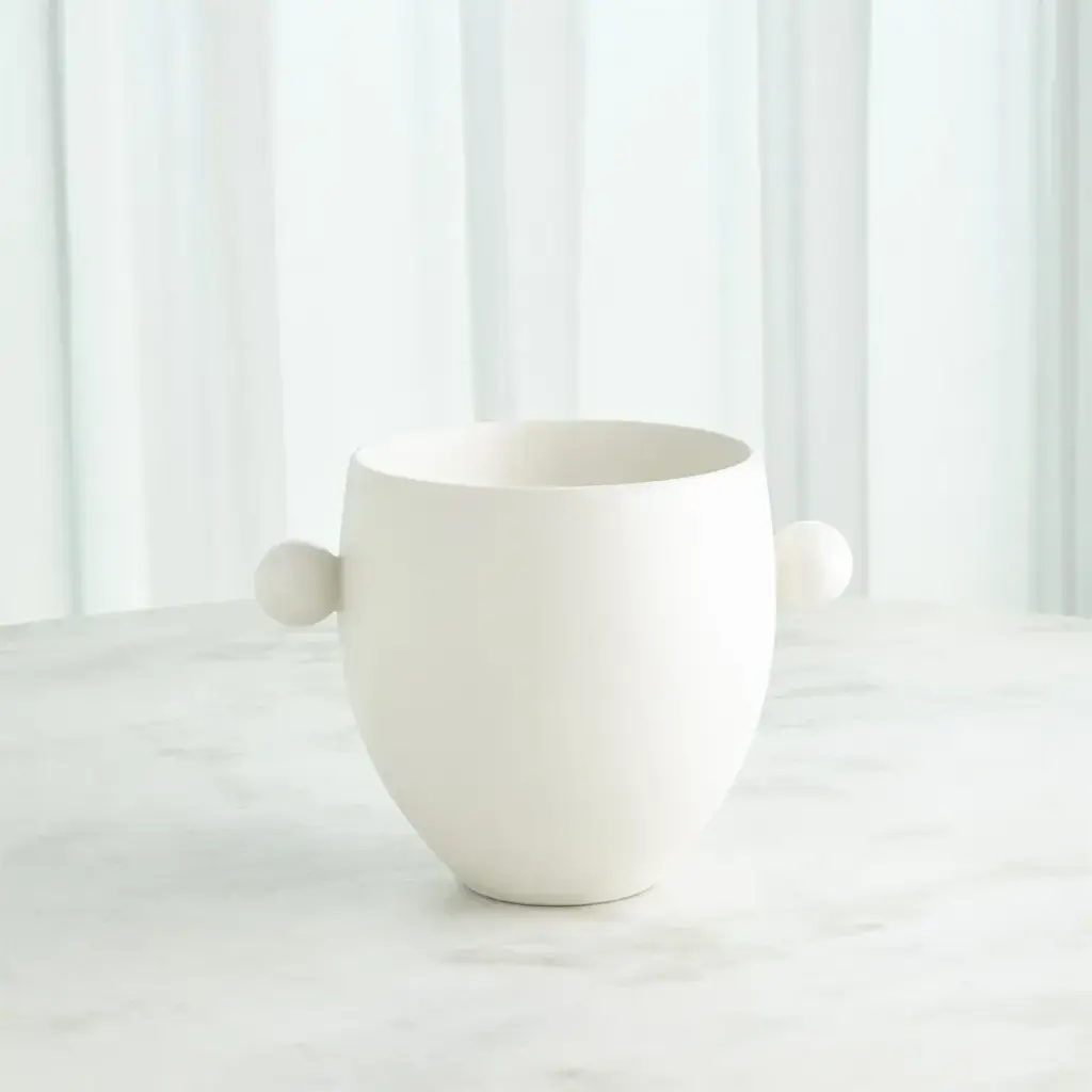 The Ball Handled Collection is crafted of Portuguese ceramic with a matte white glaze. The ice bucket has double-wall construction to prevent external condensation. Cold beverages only. Food safe. From a fashion forward perspective, Global Views offers accessories, furniture, statement lighting, and an assortment of rugs and mirrors to add beauty and joy to your home.