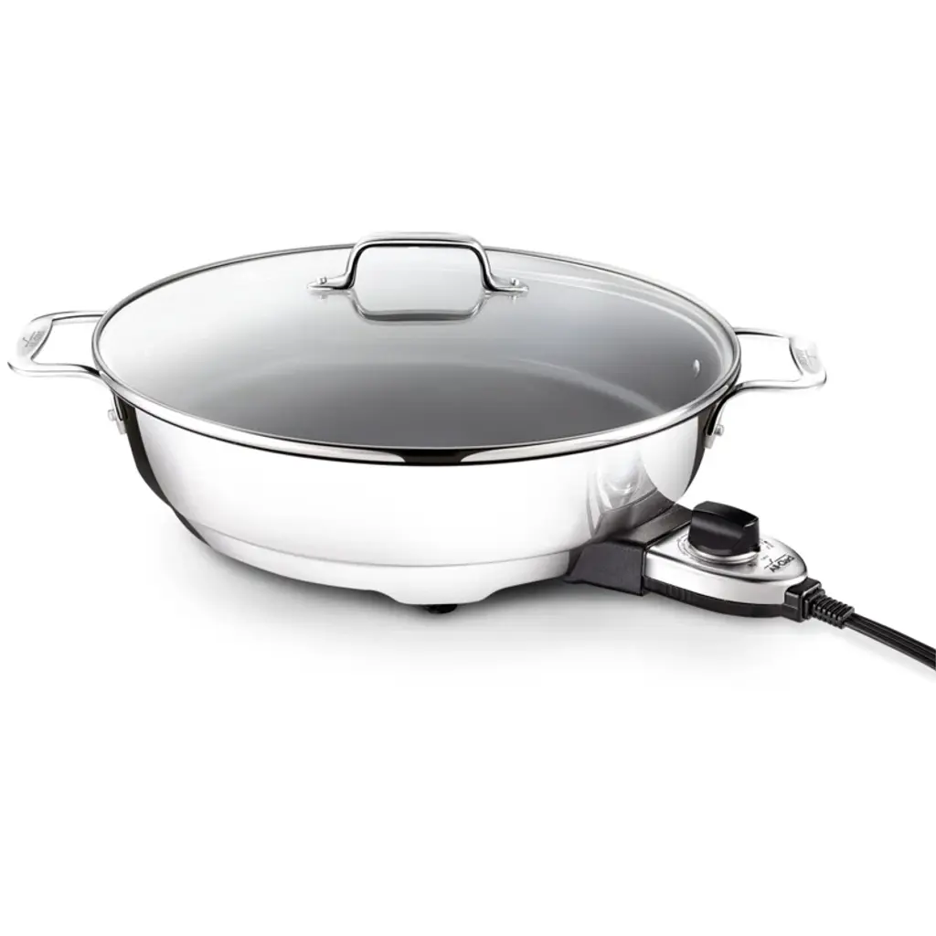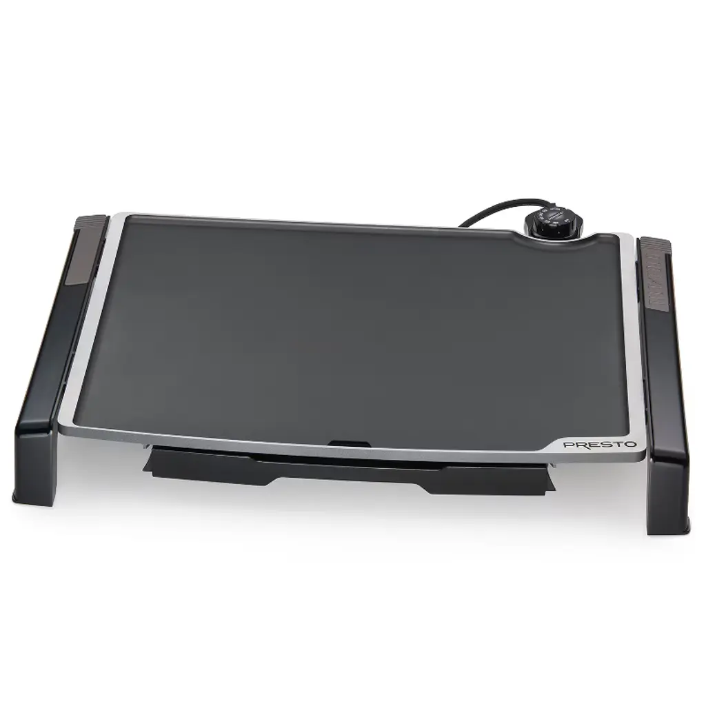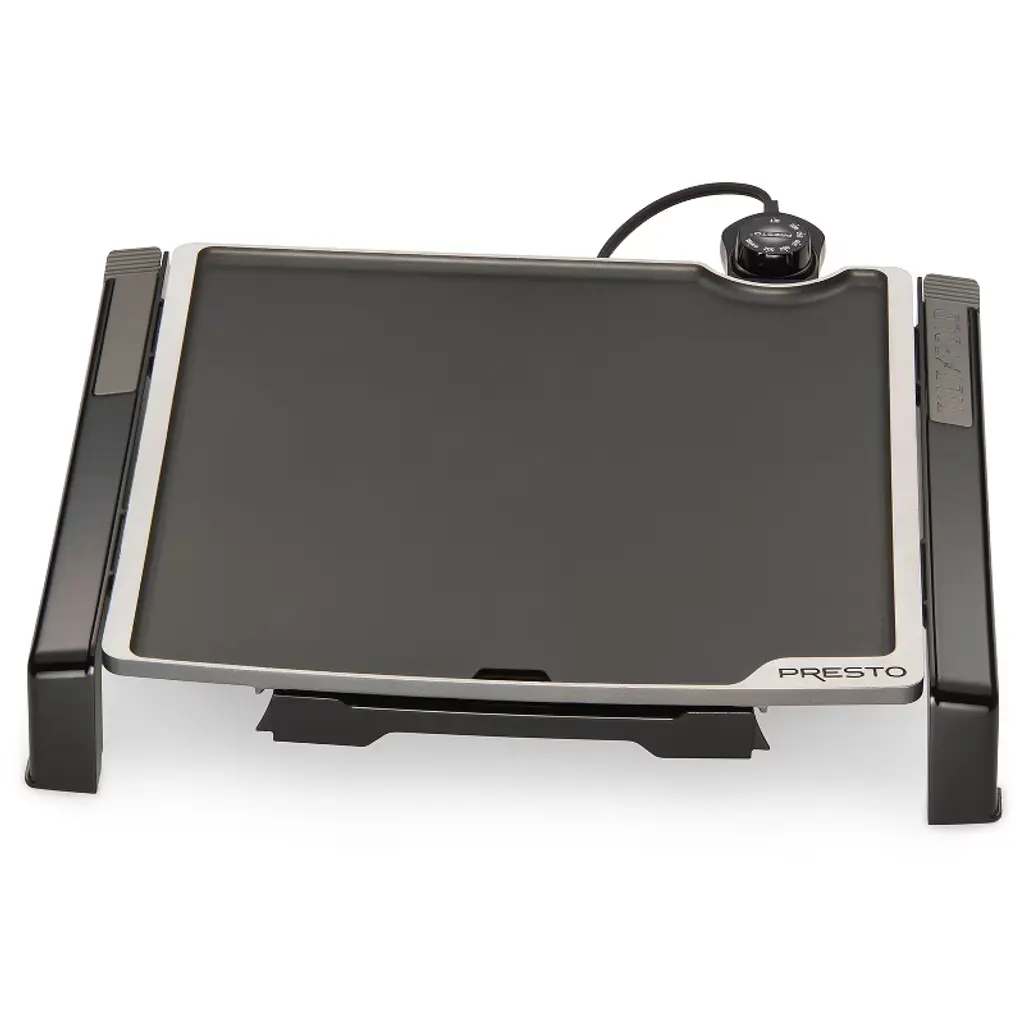 Discover the Japanese culinary tradition of teppanyaki at home. This griddle has an extra-thick cooking plate that features an aluminum core clad in stainless steel for excellent heat distribution and retention. Adjust your preferred temperature or select from four temperature settings for precise cooking of everything from delicate crepes to Korean barbecue. Use for everyday meal prep or stage a multi-course teppanyaki dinner, starting with grilled vegetables, proceeding to seafood then beef and ending with fried rice.