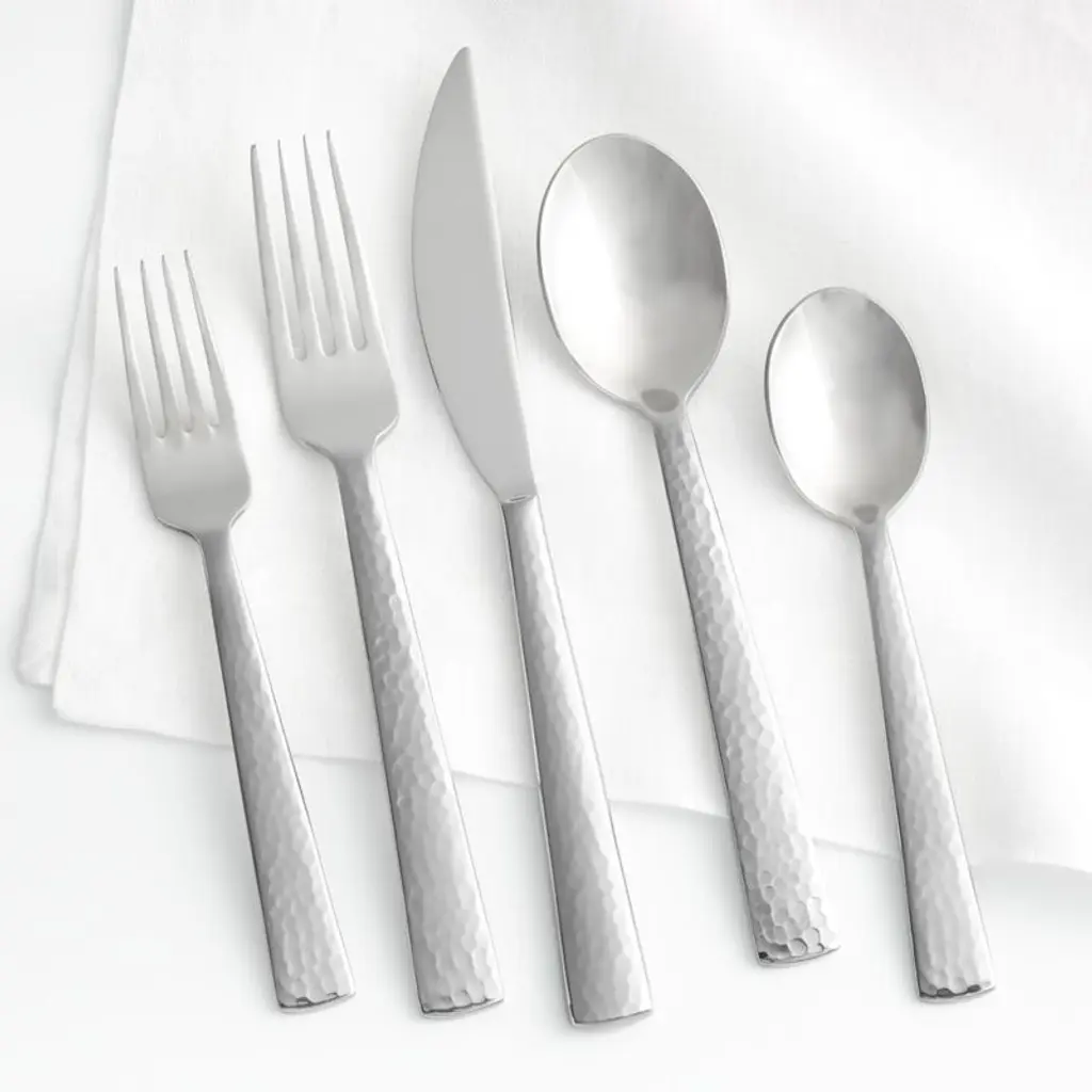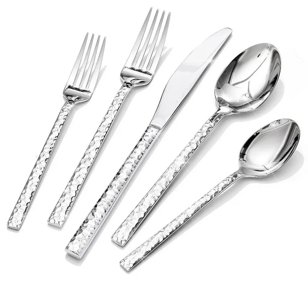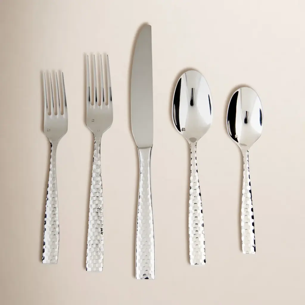Elevate your favorite dinnerware and coordinate any table setting as you entertain! From Cambridge Silversmiths, the Valinda Hammered flatware set is a forged service for 4 that has a comfortable handle and evokes a contemporary yet classic feel in your hand with a vibrant, modern design. Stainless steel is dishwasher safe and never needs polishing. They are suitable for everyday use or can be stored away for special occasions. Ideal for both indoor and outdoor use.