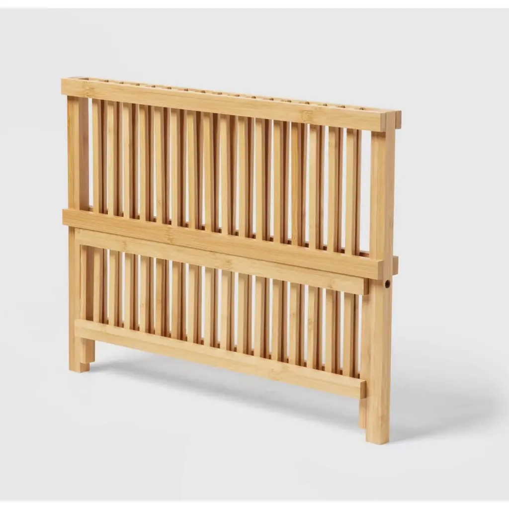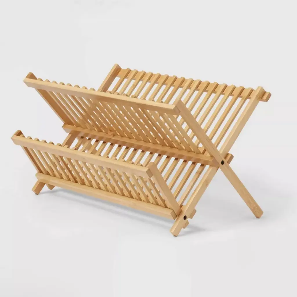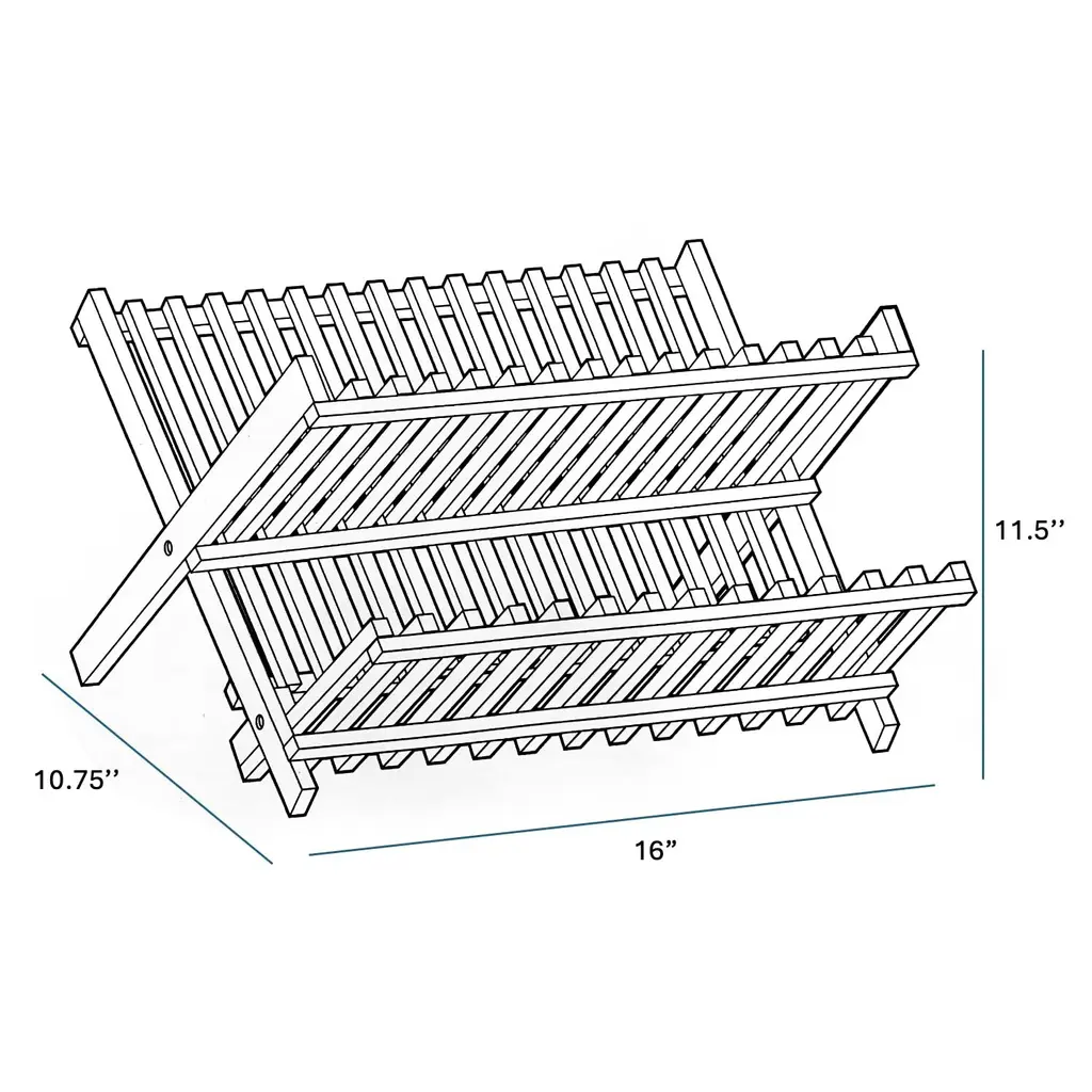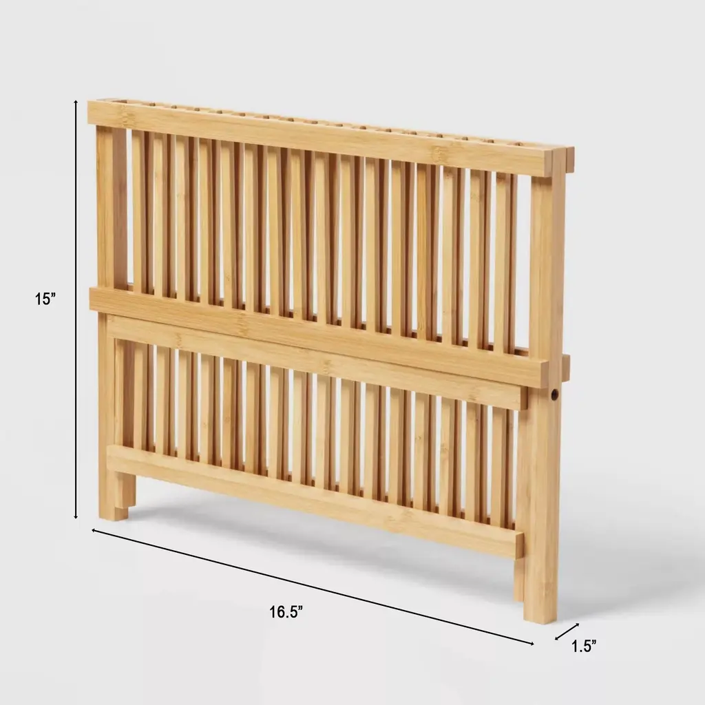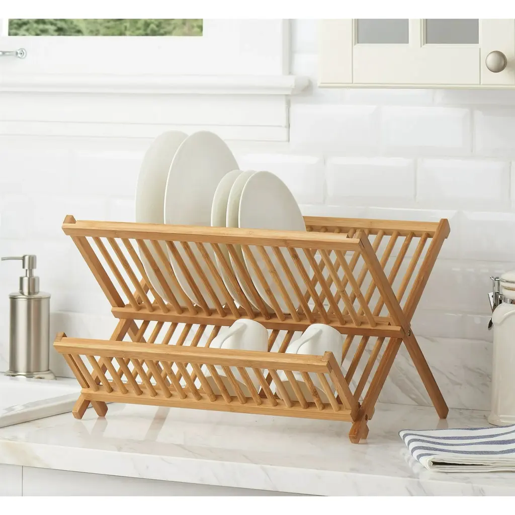 Bamboo Dish Drying Rack - 2-Tier Collapsible & Foldable Countertop Organizer, Natural Eco-Friendly Wood, Space-Saving Design - Natural Bamboo