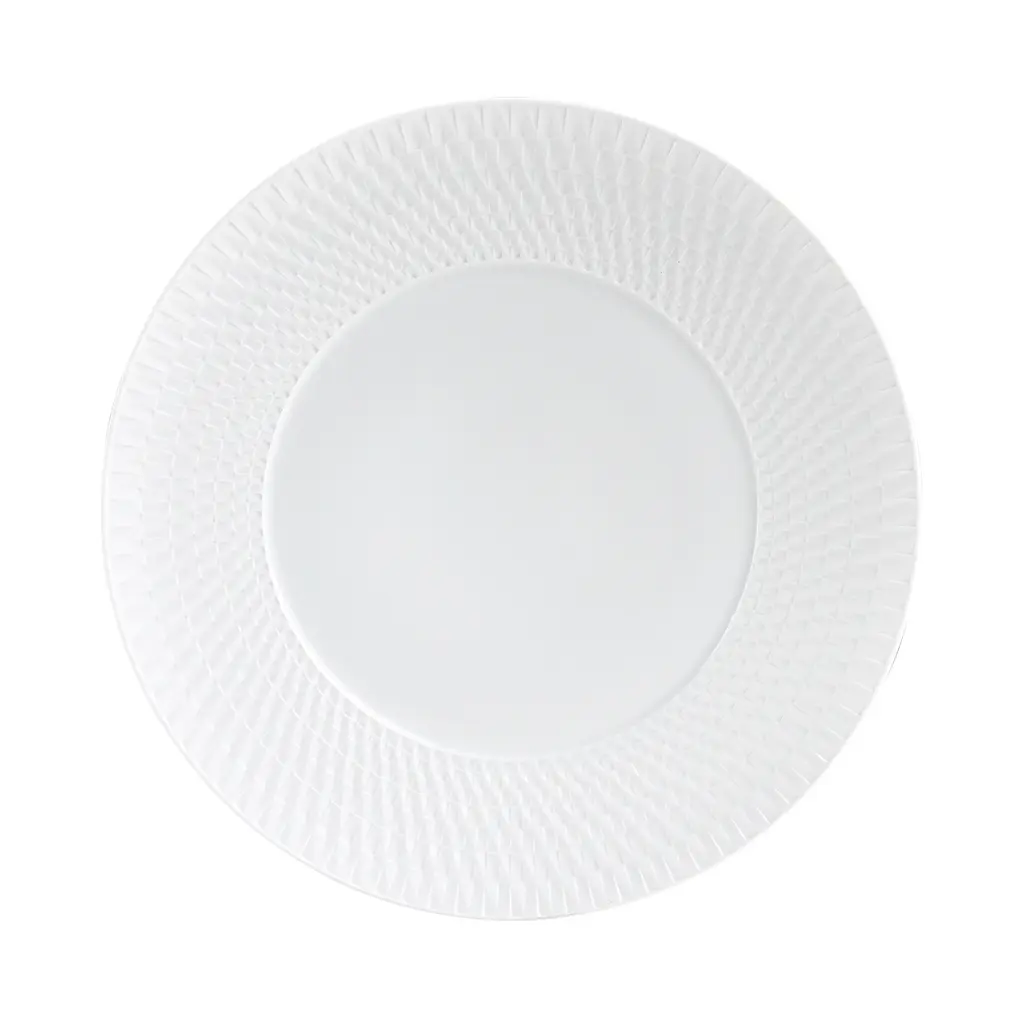 Designed by Barbara Barry for Haviland, the Illusion dinnerware collection features wide bands of color on a background of white Limoges porcelain. Each piece is accented with a thin band of gold. Five piece place setting includes dinner plate, dessert plate, bread & butter plate, teacup & saucer. Haviland Porcelain was founded by David Haviland, an American who moved from New York to France after he was brought a broken tea cup to match and recognized the quality and color of the old piece of porcelain. Filled with curiosity, he went to France to find the factory where the cup had been made, but the samples he was sent were not up to his standards. So in 1841, he moved to Limoges to set up his own factory. Traditional French dinnerware was usually produced in Limoges and sent to Paris for decoration. Haviland insisted on setting up a studio within his factory to have more control over the designs. Renowned artists, including Cocteau, Dali, and Kandinsky have played a role in the company's designs. Today, Haviland is one of the premier names in French porcelain dinnerware, sought by collectors all over the world. Clients have included the White House, Empress Eugenie, General de Gaulle, Jacques Chirac, the Emperor of Japan, and the Royal Court of Morocco.