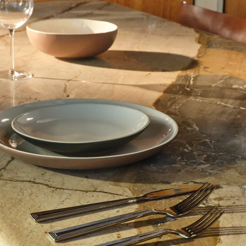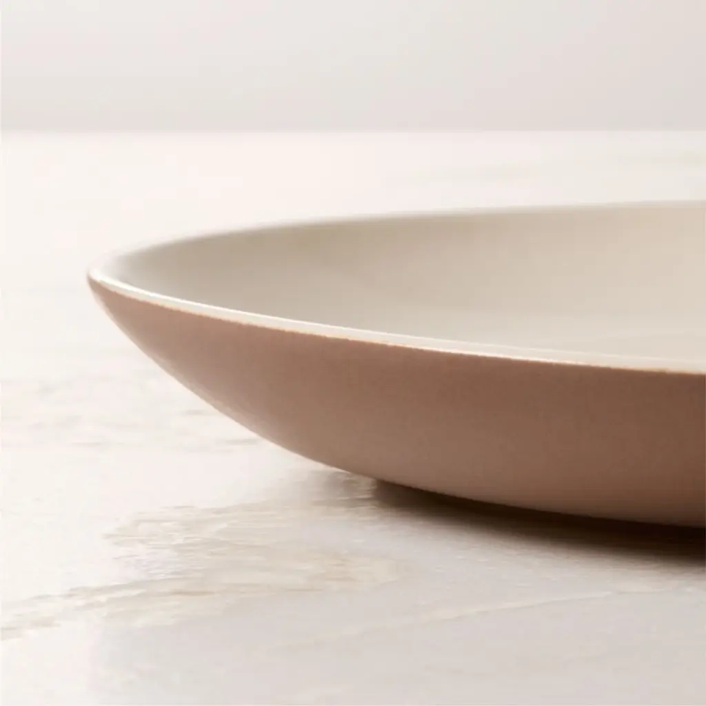 Named after crescent-shaped sand dunes, the Barchan collection by Kravitz Design translates Lenny Kravitz's Malibu free-spirit aesthetic into modern stoneware dinnerware. Featuring a high-gloss warm white interior with a matte, softly textured finish on the exterior that reminds us of sand, the contrast between the two finishes adds subtle tension. Made in Portugal, the effortlessly elegant dinner plate easily transitions from everyday dining to elevated entertaining. CB2 exclusive.