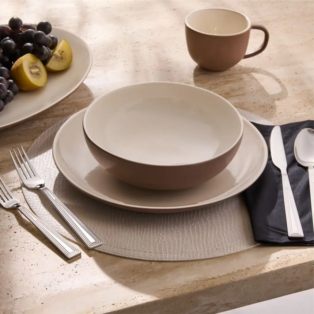 Named after crescent-shaped sand dunes, the Barchan collection by Kravitz Design translates Lenny Kravitz's Malibu free-spirit aesthetic into modern stoneware dinnerware. Featuring a high-gloss warm white interior with a matte, softly textured finish on the exterior that reminds us of sand, the contrast between the two finishes adds subtle tension. Made in Portugal, the effortlessly elegant dinnerware easily transitions from everyday dining to elevated entertaining. CB2 exclusive.