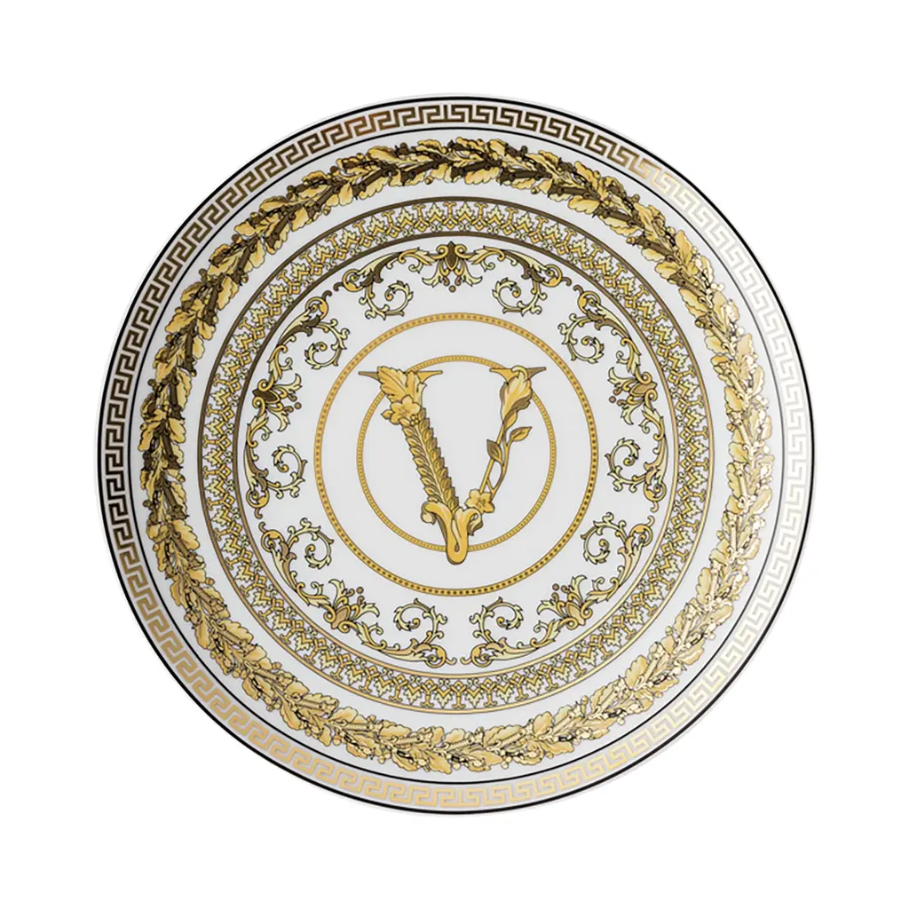 A celebration of Versace's heritage, the Barocco Mosaic Dinnerware Collection was created from four archive prints patchworked into a quintessential Versace design. Pieces feature pastel purple and soft mint hues fused with classic gold-tones for a vibrant and fresh look.
