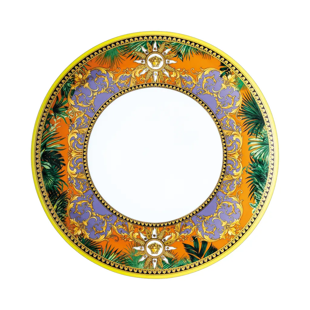Four archive prints are patchworked into a quintessentially Versace design. This stunning collection is inspired by the Versace Flash 2021 Collection, which celebrates attitude and a rebellious, young mood with its vibrant mix of neon colors, pastel shades and animalier patterns.