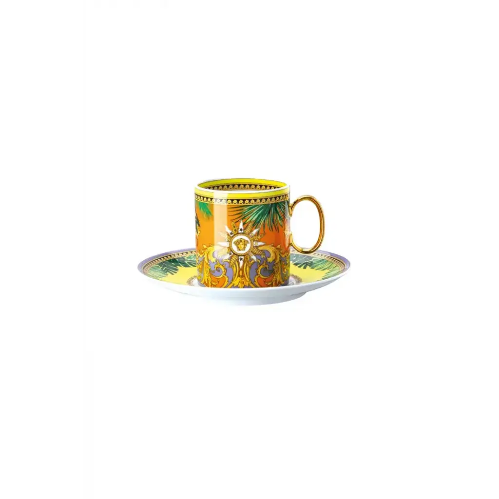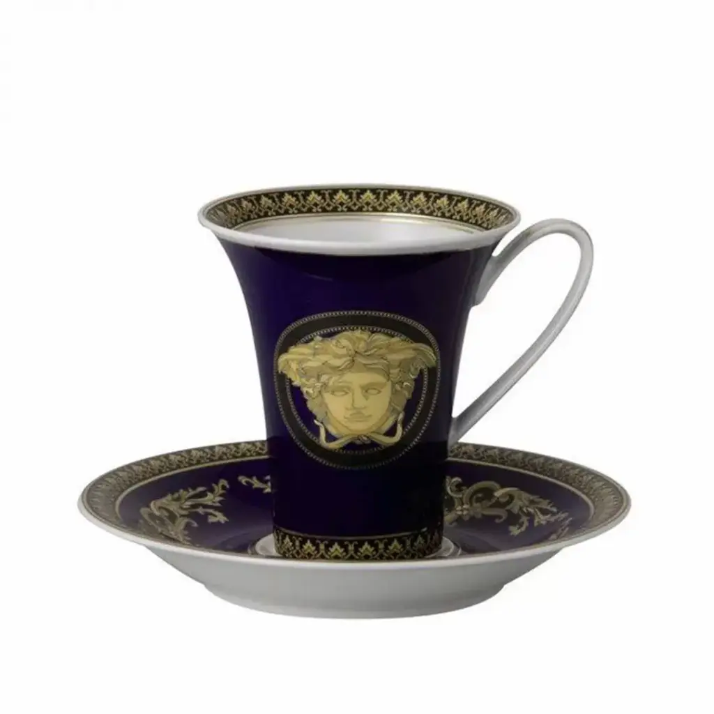 A celebration of Versace's heritage, the Barocco Mosaic Dinnerware Collection was created from four archive prints patchworked into a quintessential Versace design. Pieces feature pastel purple and soft mint hues fused with classic gold-tones for a vibrant and fresh look.