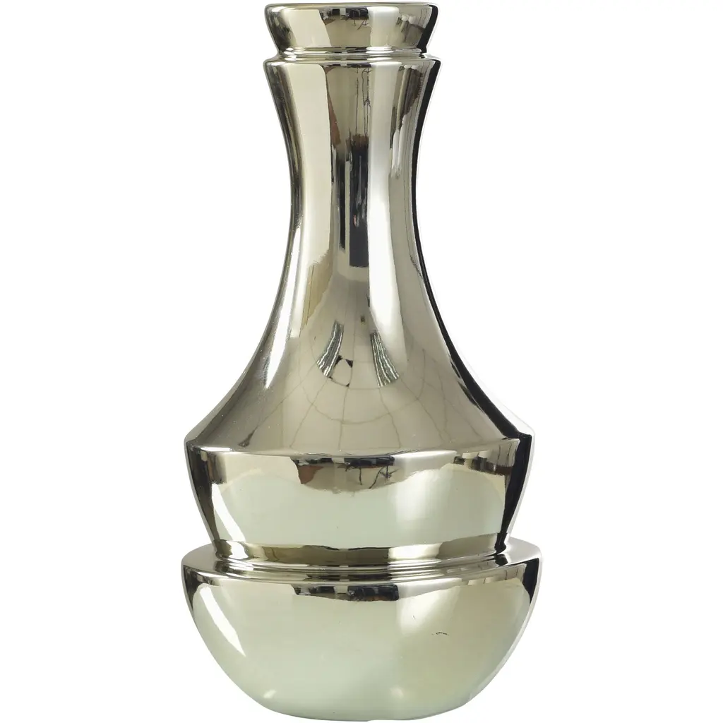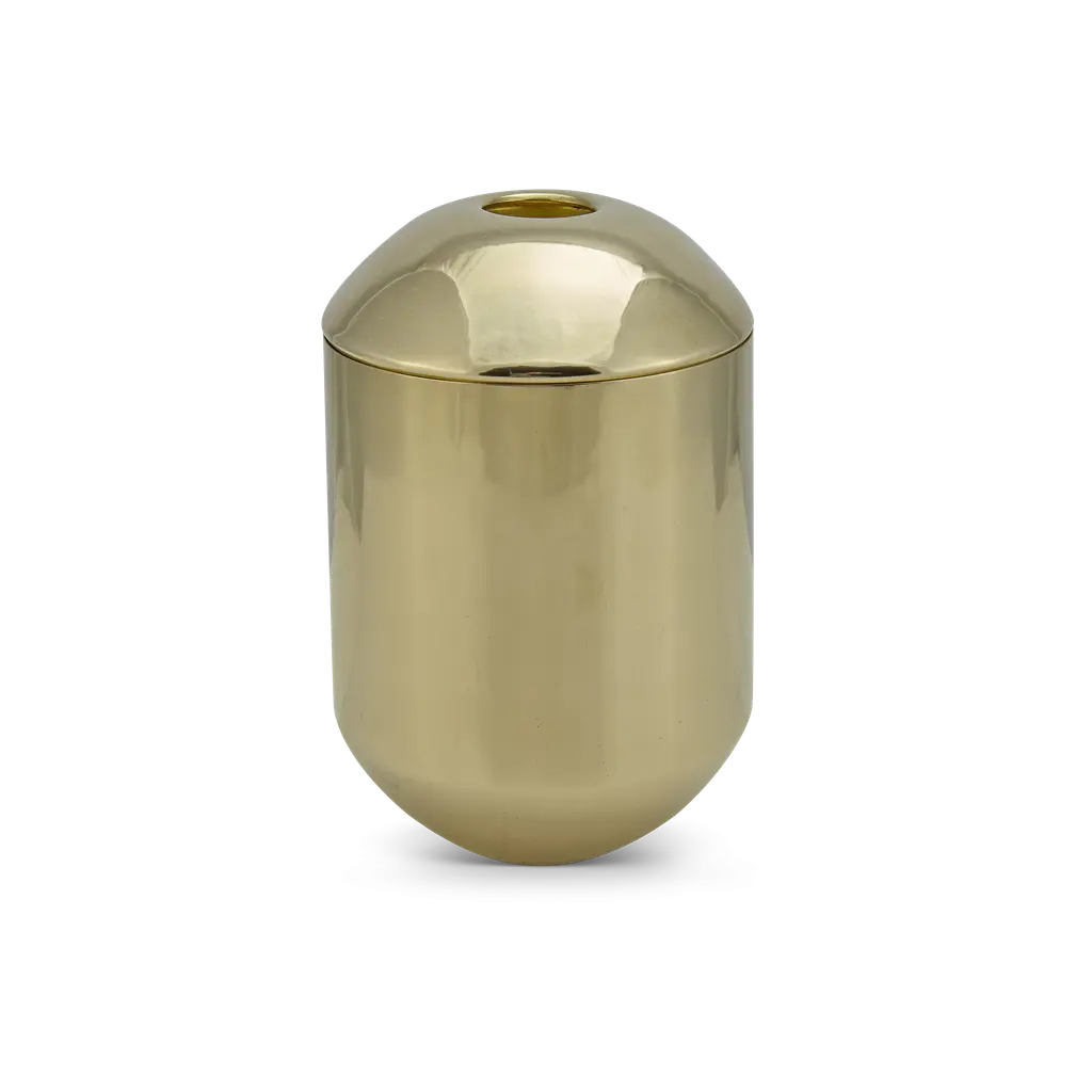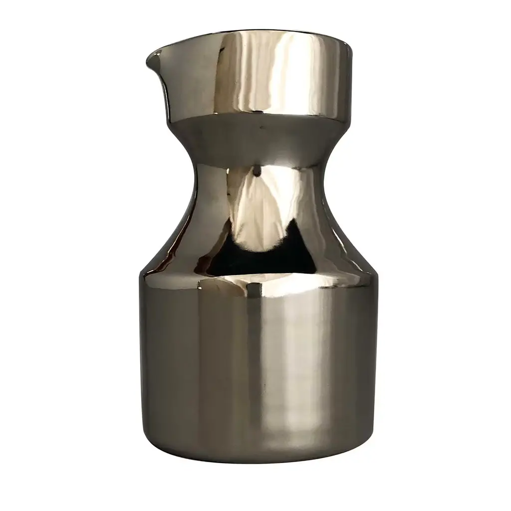 This ceramic carafe is inspired by 1970s Scandianvian minimalism. Handspun in white ceramic, the carafe is coated with white enamel and finished in glistening bronze by a soft-bristle brush before the third firing. The carafe is suitable for use with hot and cold drinks and can be personalized with horizontal stripes and short sentences on the bottom.