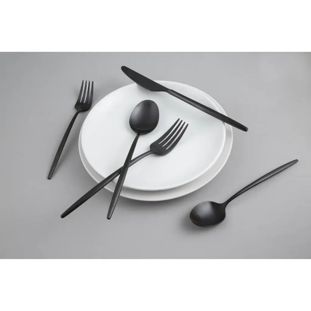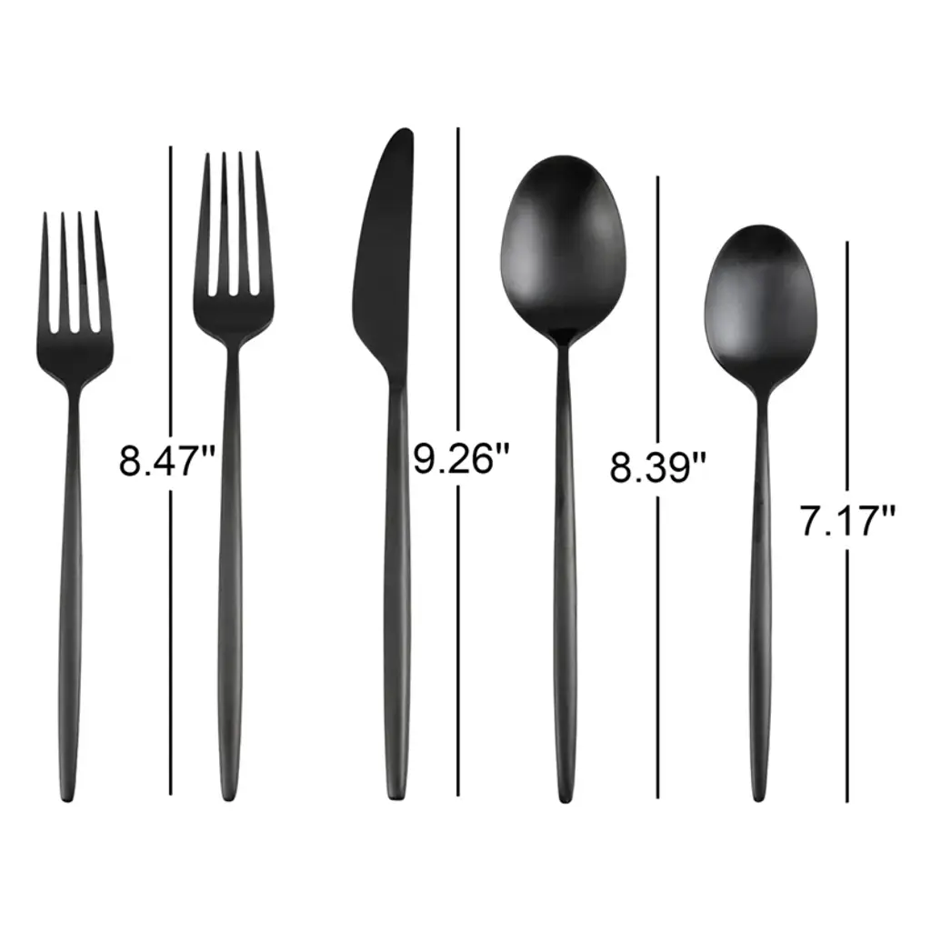Elevate your dining experience with this sleek stainless steel flatware set for four. This hand-forged set includes four each of dinner knives, dinner forks, salad forks, tablespoons, and teaspoons. Dishwasher safe for easy care, rust-resistant for lasting shine. Dining made effortlessly chic.