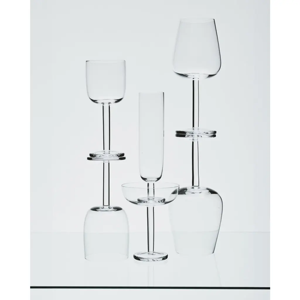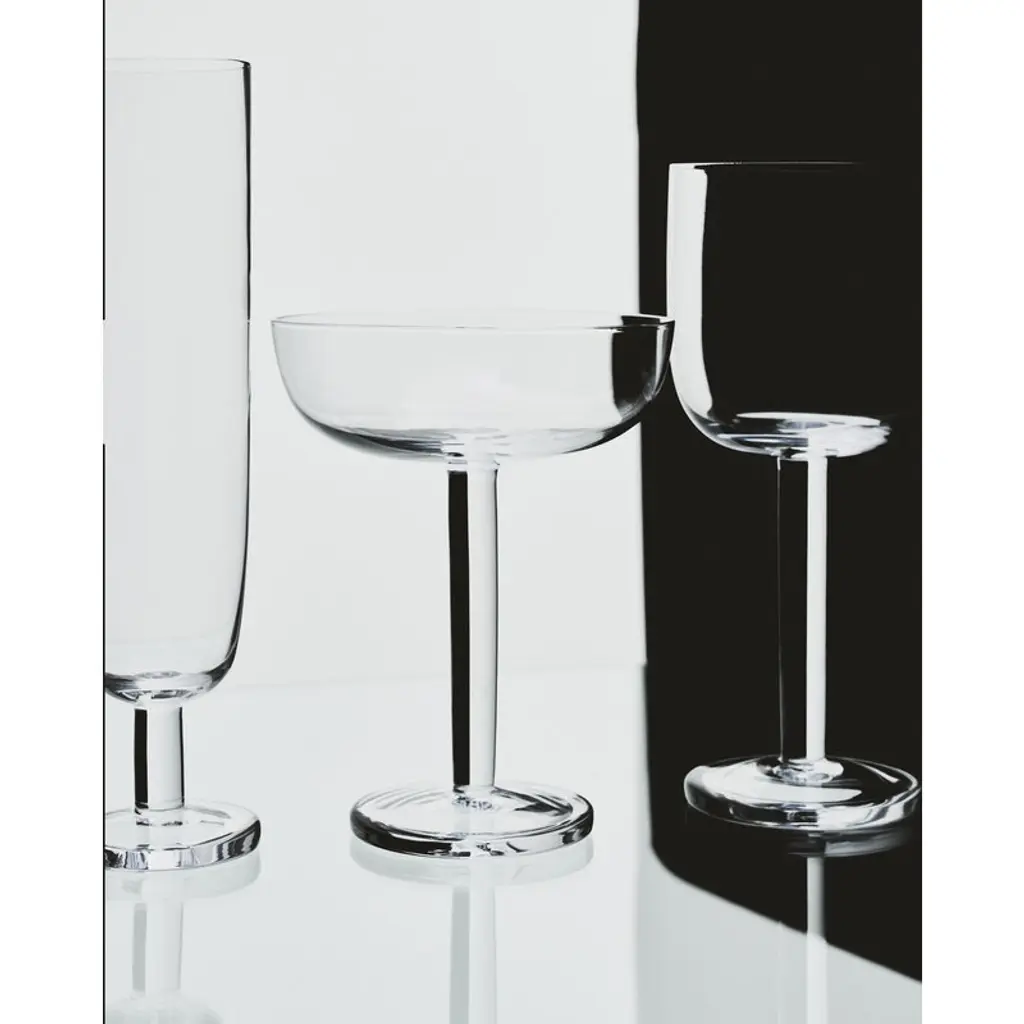 Serax's Base wine glasses set the table with minimalist elegance. The wine glass set includes four white wine glasses, four red wine glasses and four champagne coupe glasses each —enough to accommodate an even larger crowd! The Base wine glass set is part of a dinnerware and cutlery collection designed by Piet Boon, featuring simple, functional shapes with a calm and sophisticated feel. The Base tableware provides an elegant setting for even the finest meals, while their sturdy design ensures they serve just as well for everyday dining.