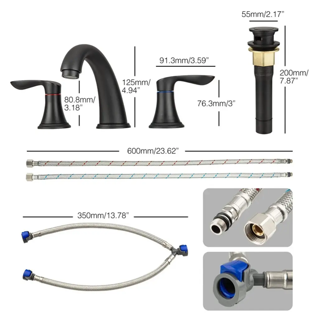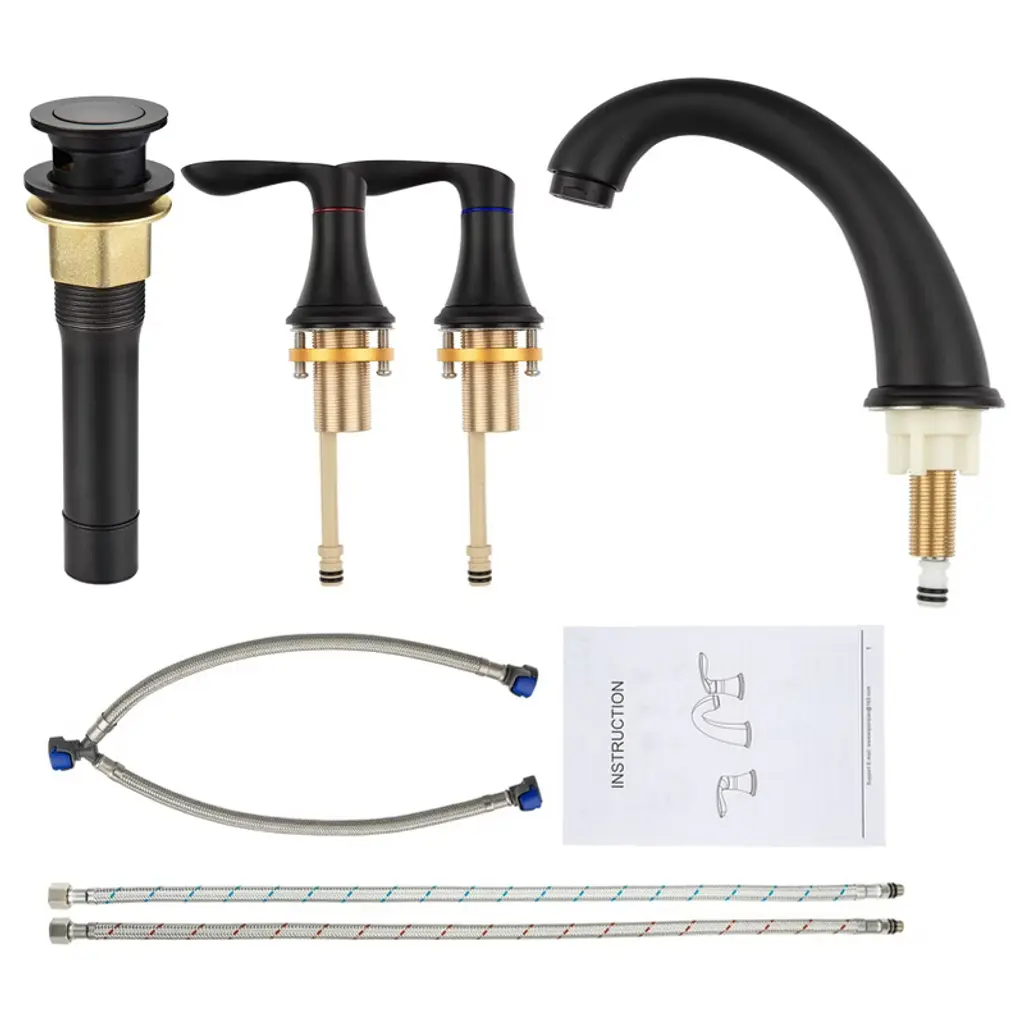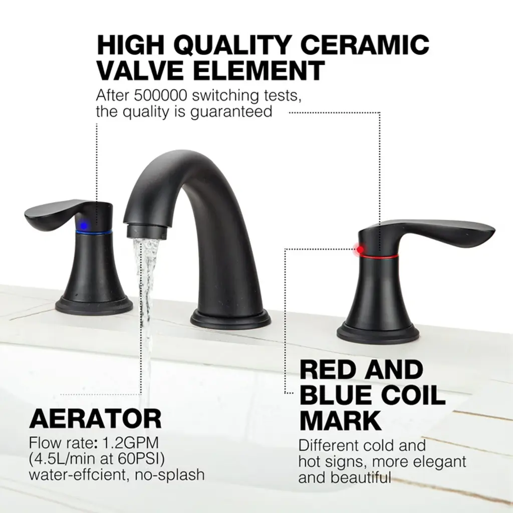 1.Premium Ceramic Valve: Tested for Durability & Leak-Proof Performance At the core of this bathroom faucet lies a top-tier branded ceramic valve, rigorously tested through over 500,000 switching cycles to guarantee long-lasting reliability. With a maximum flow rate of 1.2 GPM, it balances water efficiency with consistent performance. The valve¡¯s robust design ensures 100% leak-proof operation, even under extreme temperature fluctuations¡ªfrom scalding hot to icy cold. Maintenance-free by nature, it eliminates the hassle of frequent repairs, making it a dependable choice for daily use. 2.Hassle-Free Quick Installation: No Plumber NeededDesigned for DIY convenience, this faucet features a specialized quick-connect hose system that simplifies setup. Its widespread design accommodates 3-hole sinks with an adjustable spread (6¨C12 inches), adapting to your sink¡¯s specific dimensions. A pre-installed rough-in valve eliminates the need for additional parts, while the "Y"-shaped quick-connect mixer hose allows easy connection of the three separate components. Whether you¡¯re a seasoned DIYer or new to home projects, you can have it installed in minutes¡ªno professional plumber required. 3.Classic Elegance with Functional DesignThis two-handle faucet blends timeless style with practicality. The handles offer precise control over water flow and temperature, with red and blue rubber rings for easy hot/cold distinction¡ªpreventing accidental scalds. Finished in sleek brushed nickel (with optional brushed gold), it adds a touch of sophistication to any bathroom, complementing modern, traditional, or transitional decor. Its clean lines and understated luxury make it a focal point that elevates your sink area. 4.Certified Safety & Quality MaterialsCommitted to safety, this faucet meets strict CEC, cUPC, and NSF certifications, ensuring compliance with industry standards for water efficiency and material safety. Crafted with copper pipes, it guarantees clean, safe water by resisting corrosion and preventing contaminants from leaching into the water supply. Whether for family bathrooms or guest spaces, it prioritizes both performance and peace of mind. 5.Reliable Customer SupportBacked by a dedicated service team, we stand behind the quality of our faucet. If you encounter any issues¡ªfrom installation questions to part concerns¡ªour team responds promptly to resolve problems, ensuring your satisfaction. With a focus on customer care, we make sure your experience with the product is as smooth as its operation.