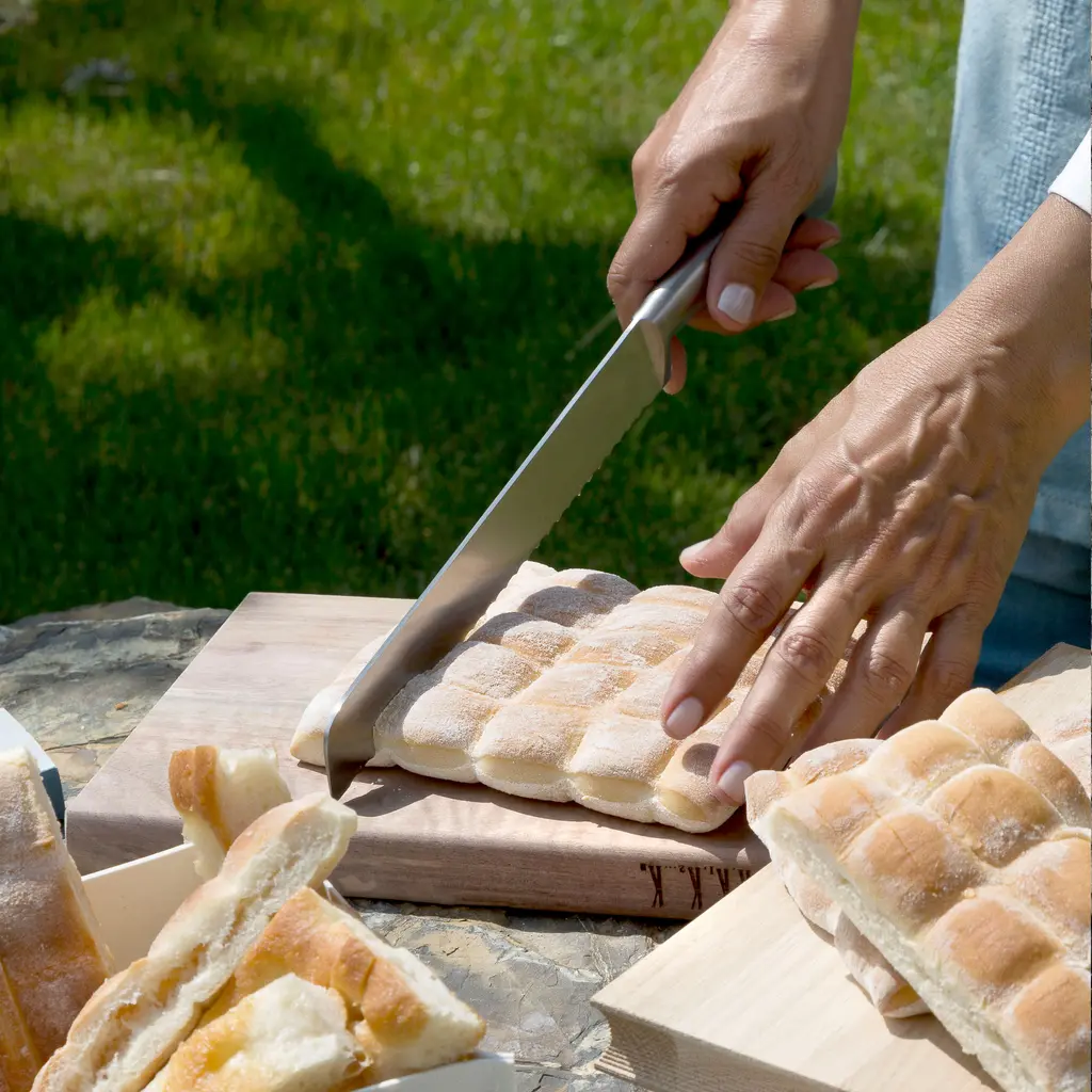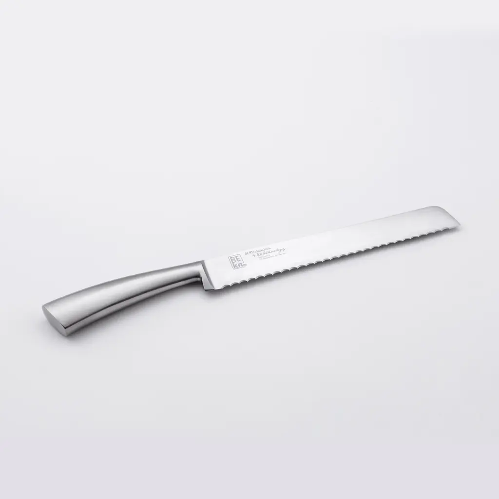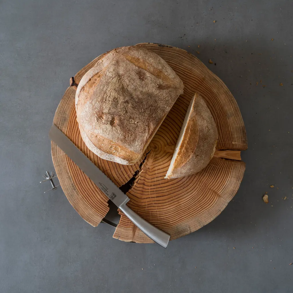 Will it squash the crumb? No—its scalloped edge saws through crust while leaving the inside airy and intact. A joint project between KNIndustrie and Coltelleria Berti, the BE–Knife bread knife carries forward more than a century of Italian craft. Forged from a single piece of brushed stainless steel, it has a squared bolster that flows into a handle tapering gently in hand. The serrations are cut for a steady glide—little force, no tearing—so baguettes and country loaves slice without collapse. It’s just as good on tomatoes, citrus, or a layered sponge. Made in Italy. Hand-wash and dry.