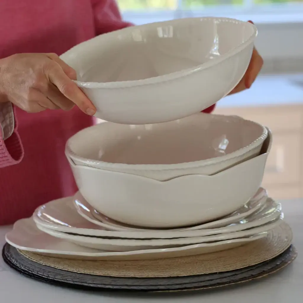 Beaded Cream Melamine Dinner Plates (Set Of 4)
