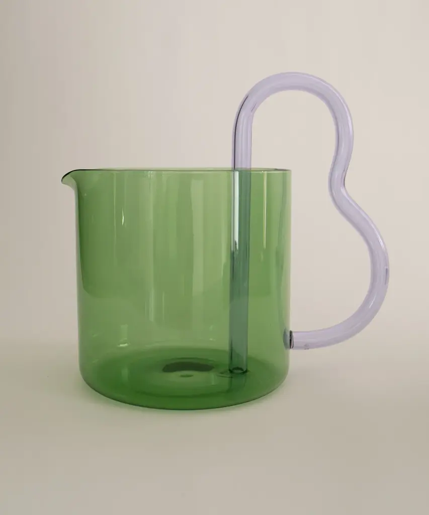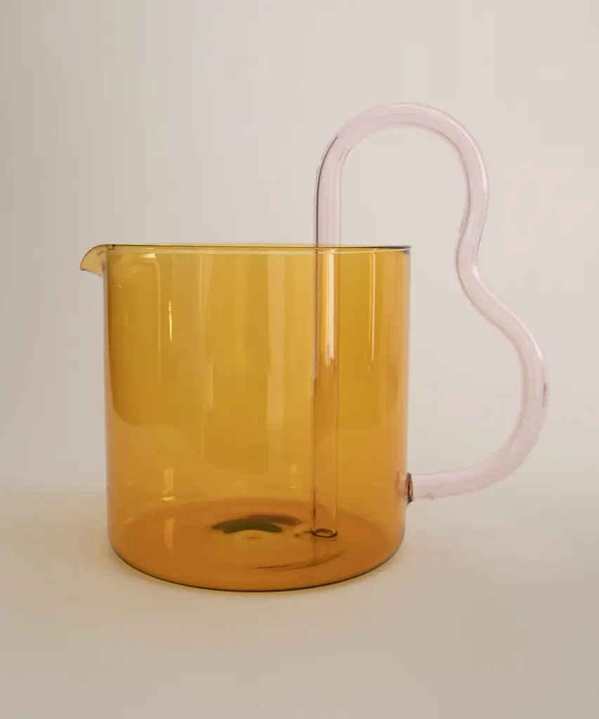 A borosilicate glass pitcher, for pouring water, juice, watering plants, holding flowers, or any other use you can think of. Designed by Sophie Lou Jacobsen, a French-American designer based in New York City.