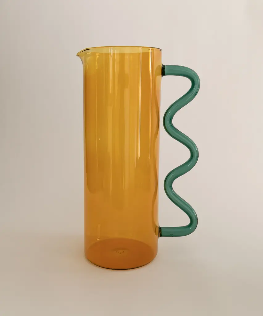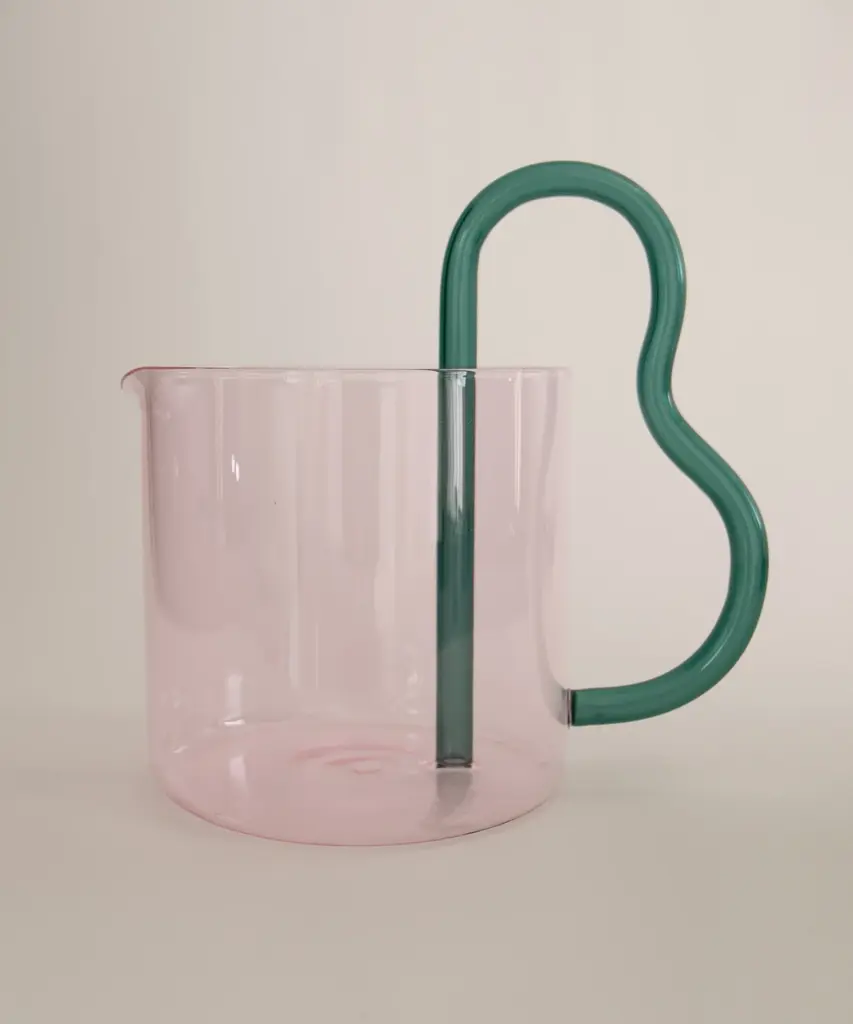 A borosilicate glass pitcher, for pouring water, juice, watering plants, holding flowers, or any other use you can think of. Designed by Sophie Lou Jacobsen, a French-American designer based in New York City.