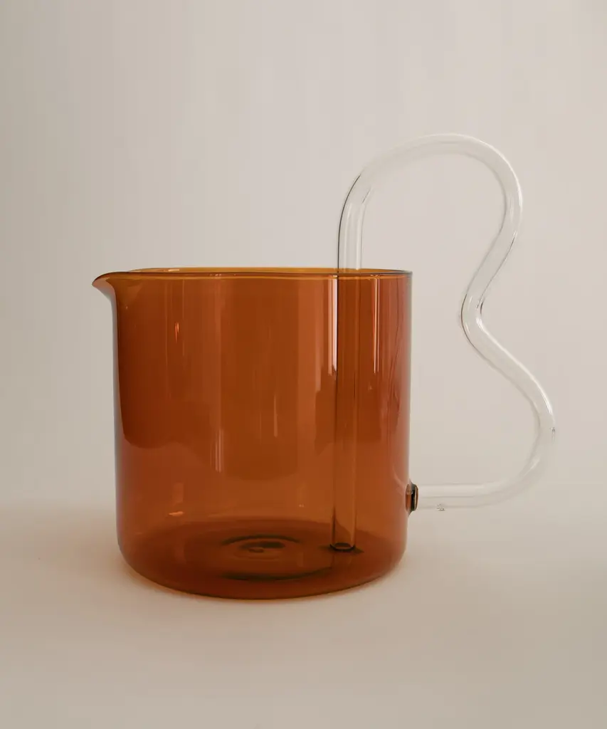 A borosilicate glass pitcher, for pouring water, juice, watering plants, holding flowers, or any other use you can think of. Designed by Sophie Lou Jacobsen, a French-American designer based in New York City.