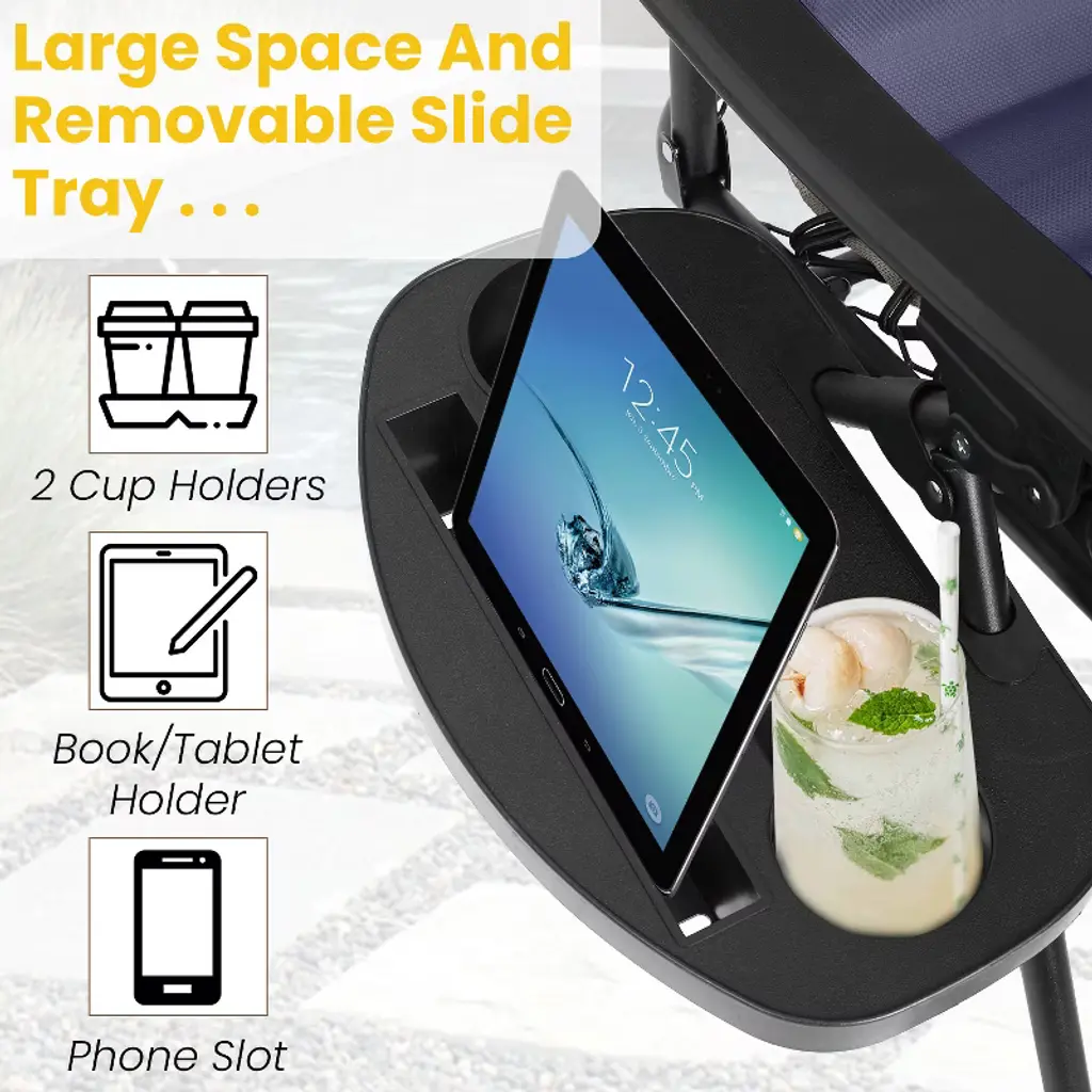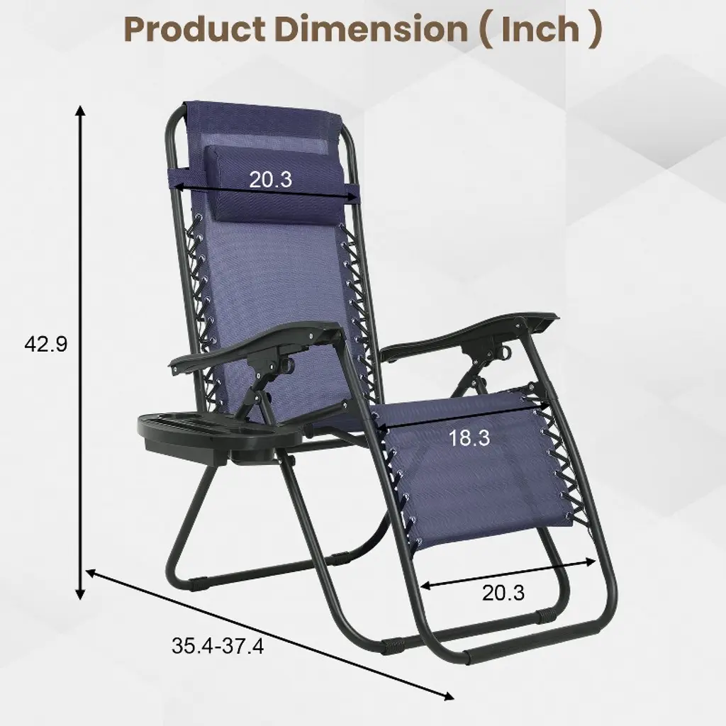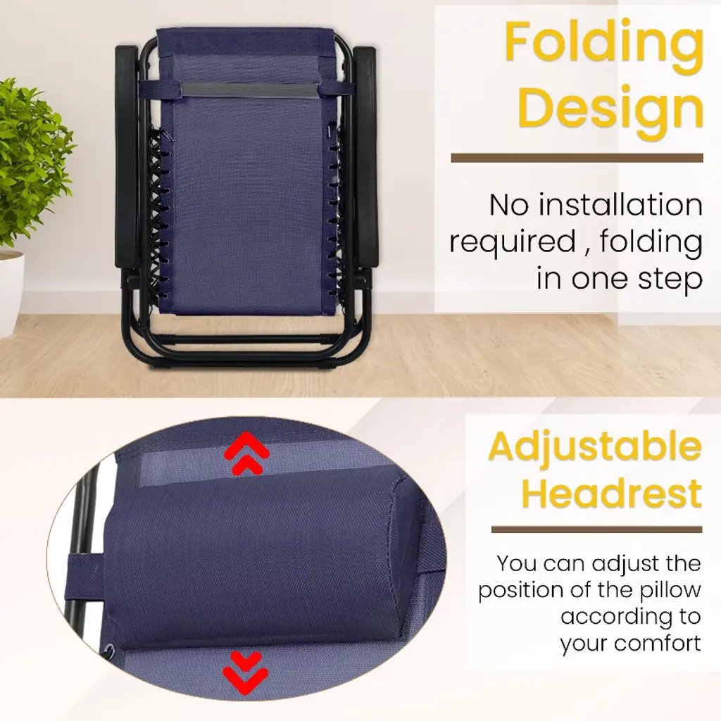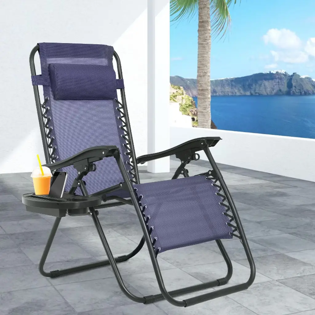 Beatmassage Zero Gravity Chair Foldable Patio Chair Lounge Patio Chaise With Cup Holder, Blue