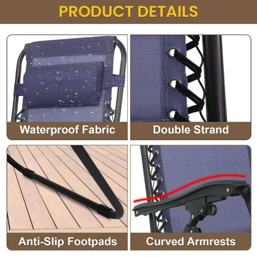 BestMassage High-Quality Zero Gravity Recliner features a sturdy frame that supports up to 275 lbs, ensuring long-lasting durability. The breathable textilene fabric keeps you cool in summer, while cushions provide warmth in winter for year-round comfort. This patio lawn chair is designed for ultimate relaxation, it offers multiple reclining positions and an adjustable headrest, with a built-in cup holder tray for drinks and accessories. The chair’s foldable, lightweight design makes it easy to store and transport, perfect for use by the pool, in the garden, or on the patio. The lockable reclining system allows for smooth, effortless adjustments up to a 160-degree angle. Fully assembled and backed by a reliable warranty, this chair promises a hassle-free lounging experience.