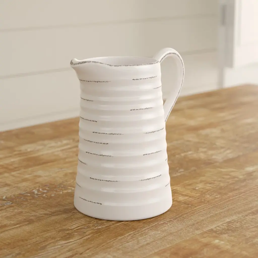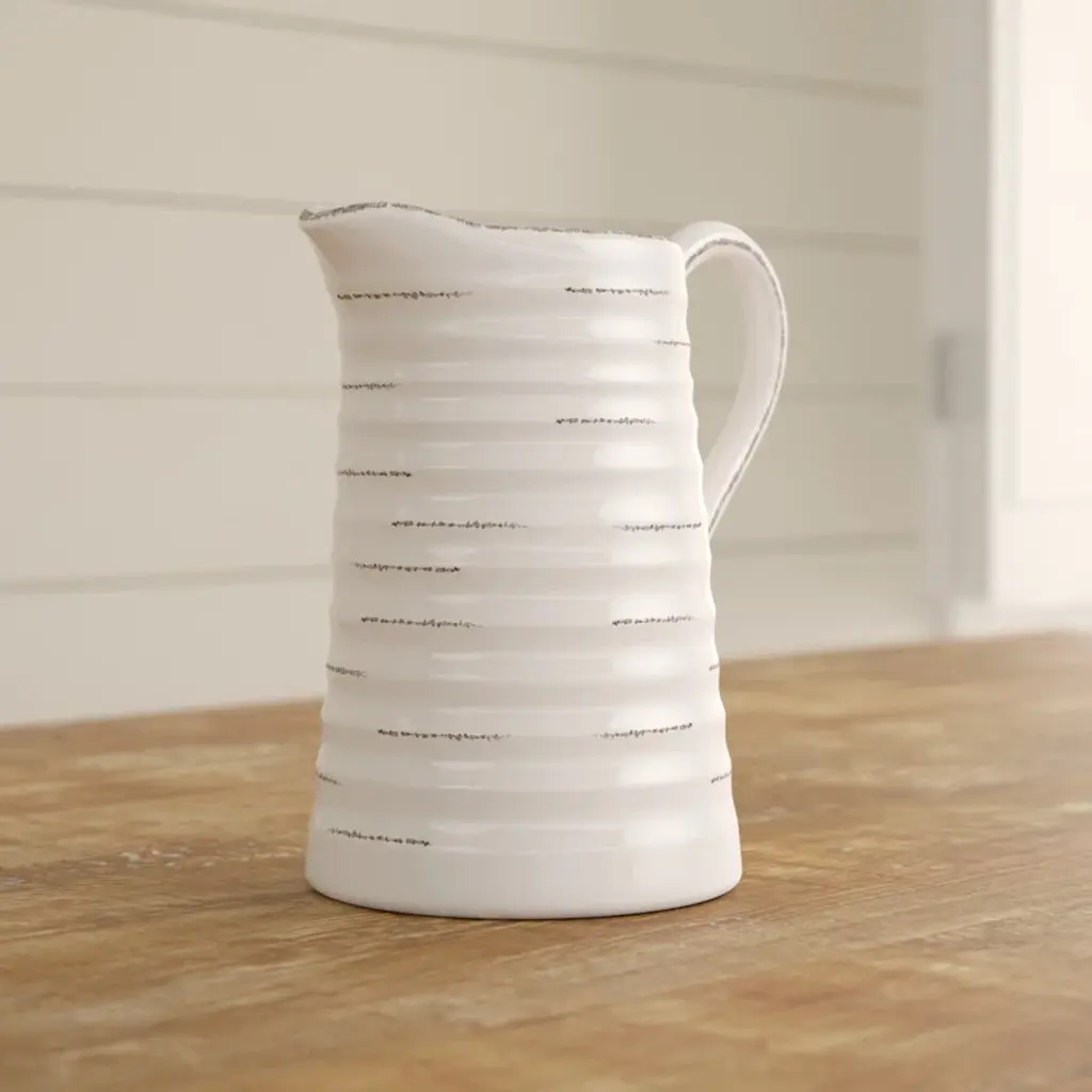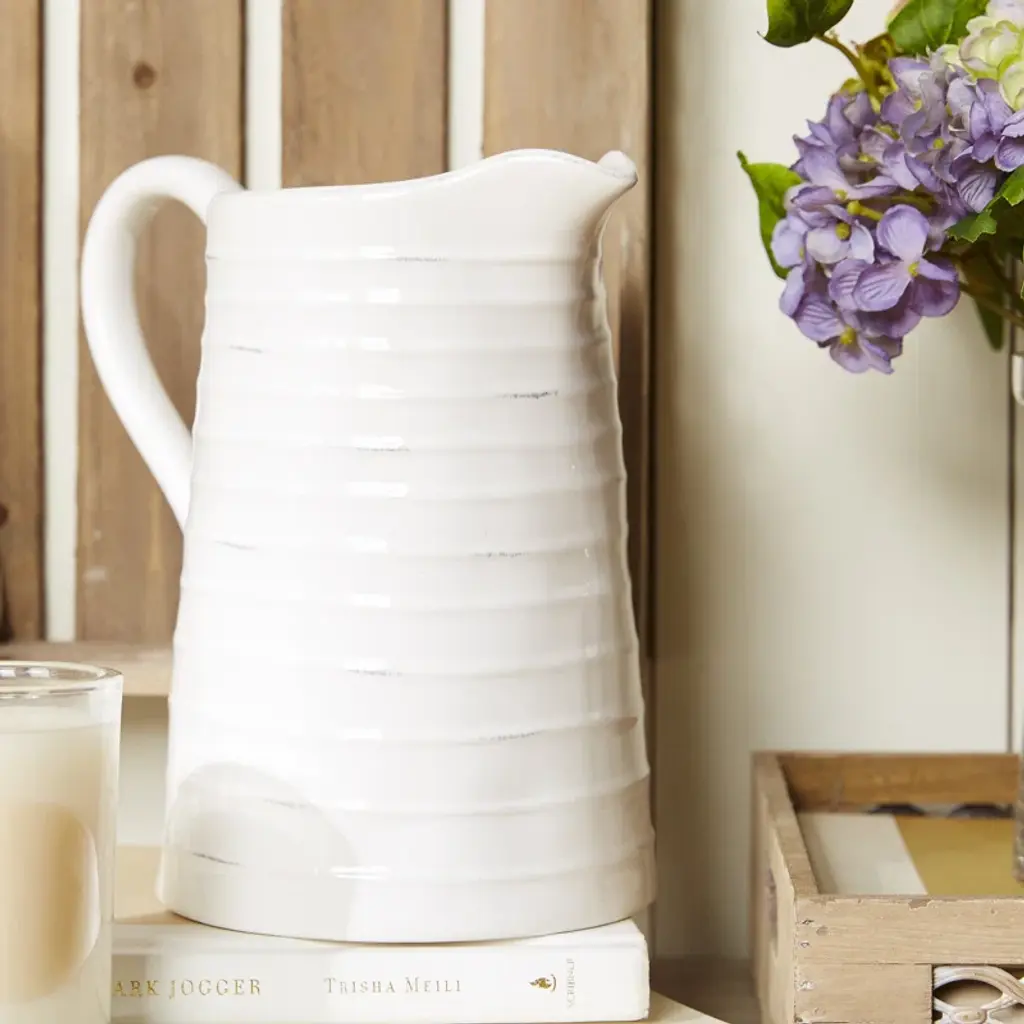 Planning a brunch gathering with the girls or a tea party for the book club? Use this ribbed white pitcher to serve guests fresh lemonade, or use it as a chic alternative vase for a blooming hydrangea arrangement.