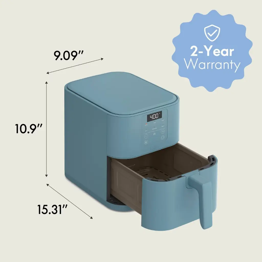 Part of our Fits-anywhere™ kitchenware system, the bella 6qt Slim Air Fryer has a streamlined profile, yet its extra-long basket holds up to 5lbs of fries, wings, salmon, and more. It has 1750 watts of power or hot, crispy food—fast. The basket and crisping tray feature our EverGood™ Ceramic Nonstick Coating that’s made without PFAS, PFOA, PTFE, lead and cadmium for easy cleanup.