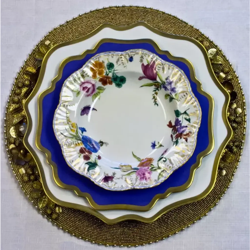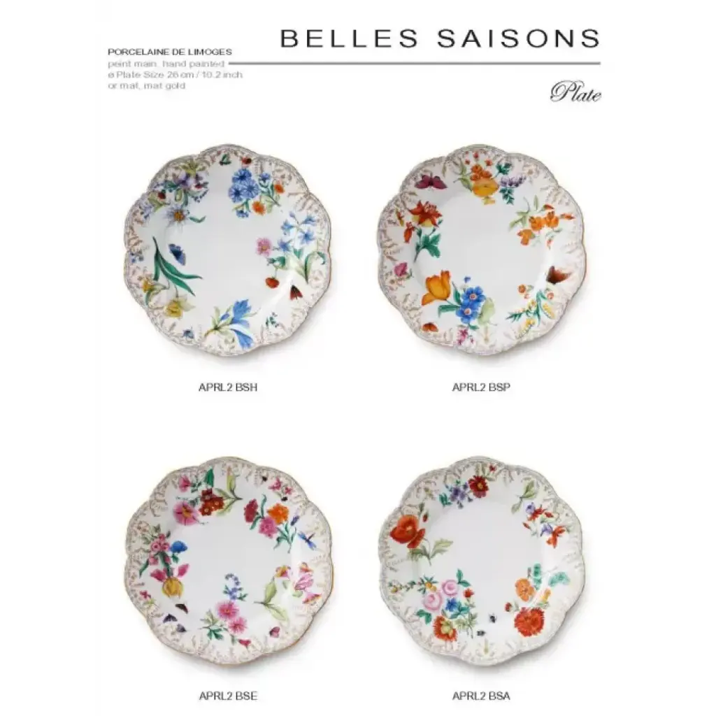 Enjoy bright blooms all year long with Alberto Pinto's Belle Saisons dinnerware. Flowers from all four seasons are shown on four different dinner plates. Edged with classic matte gold. One of France’s best-known interior designers, Alberto Pinto has designed not only homes but also yachts, private jets, luxury hotels, and restaurants. His work has been called the "haute couture of interior decorating." His prolific creations range in style from modern to classical to Asian-inspired and floral themes, and all of them are executed superbly on Limoges porcelain to create art for your table.