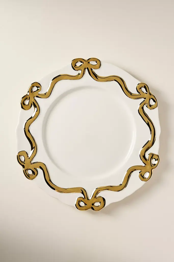 Benedita Gold Bow Stoneware Dinner Plates, Set Of 4