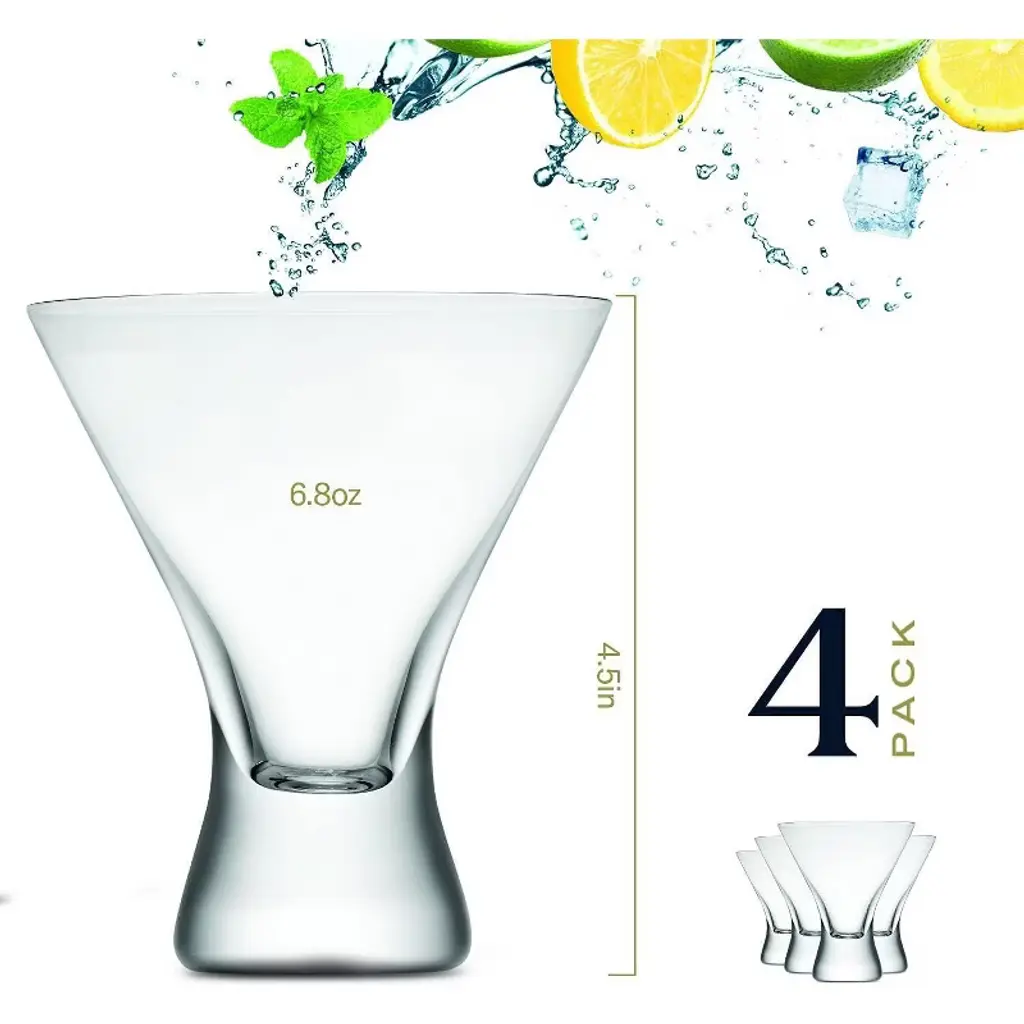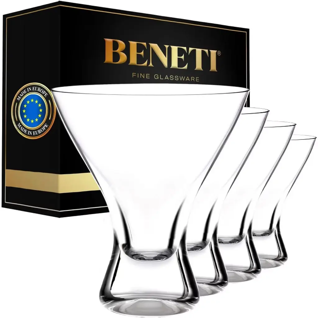 Beneti Clear Stemless Martini Glasses Set Of 4, 8Oz, Made In Europe
