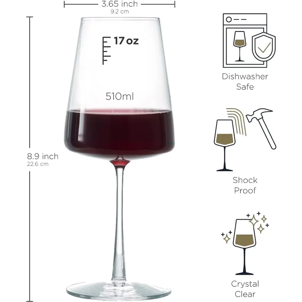 Beneti Handmade In Germany Crystal Wine Glasses Set Of 4, 17oz, Long Stem