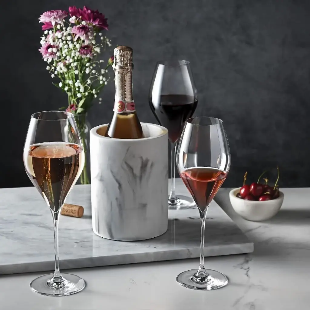 Most wine glasses are a dime a dozen. They chip, they cloud up, they never look as good on the table as you hope. Not these. The BENETI Hand-Blown European Wine Glasses bring you right to the source—crafted by skilled European artisans using time-honored glassmaking techniques. Every set of four arrives perfectly matched, each glass shaped and finished by hand. The modern long stem and angled bowl aren’t just for show—they make swirling, sniffing, and sipping your favorite reds or whites a whole experience. That universal bowl shape? It’s no accident. Whether you’re opening a vintage Bordeaux, a zesty pinot grigio, a sparkling rosé, or tonight’s house red, these glasses make every pour feel like a celebration. The crystal is lead-free—so you get nothing but pure wine flavor, never chemicals. That’s peace of mind, whether you’re serving guests or relaxing solo after a long day. And because BENETI glasses are as tough as they are elegant, you won’t be worrying about chips, cloudy spots, or those dreaded “fragile” warnings. These are built for real life and real use. Hate cleanup? So do we. That’s why these glasses are dishwasher safe. No delicate hand washing—just load them in, press start, and you’re done. The details matter: Each glass holds a generous 19 ounces, standing 15 inches tall with a sturdy base for confidence on any surface. Their crystal-clear, solid construction looks just as good as it feels. And since every set arrives gift boxed, you’re covered for weddings, housewarmings, anniversaries, or just a treat for yourself. The bottom line? With BENETI, you’re not just pouring a drink—you’re making every glass a moment worth savoring.