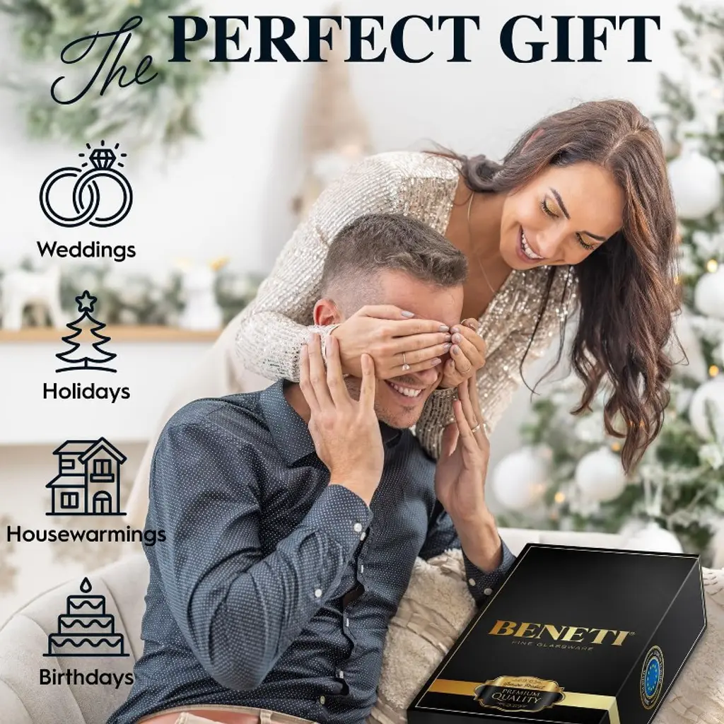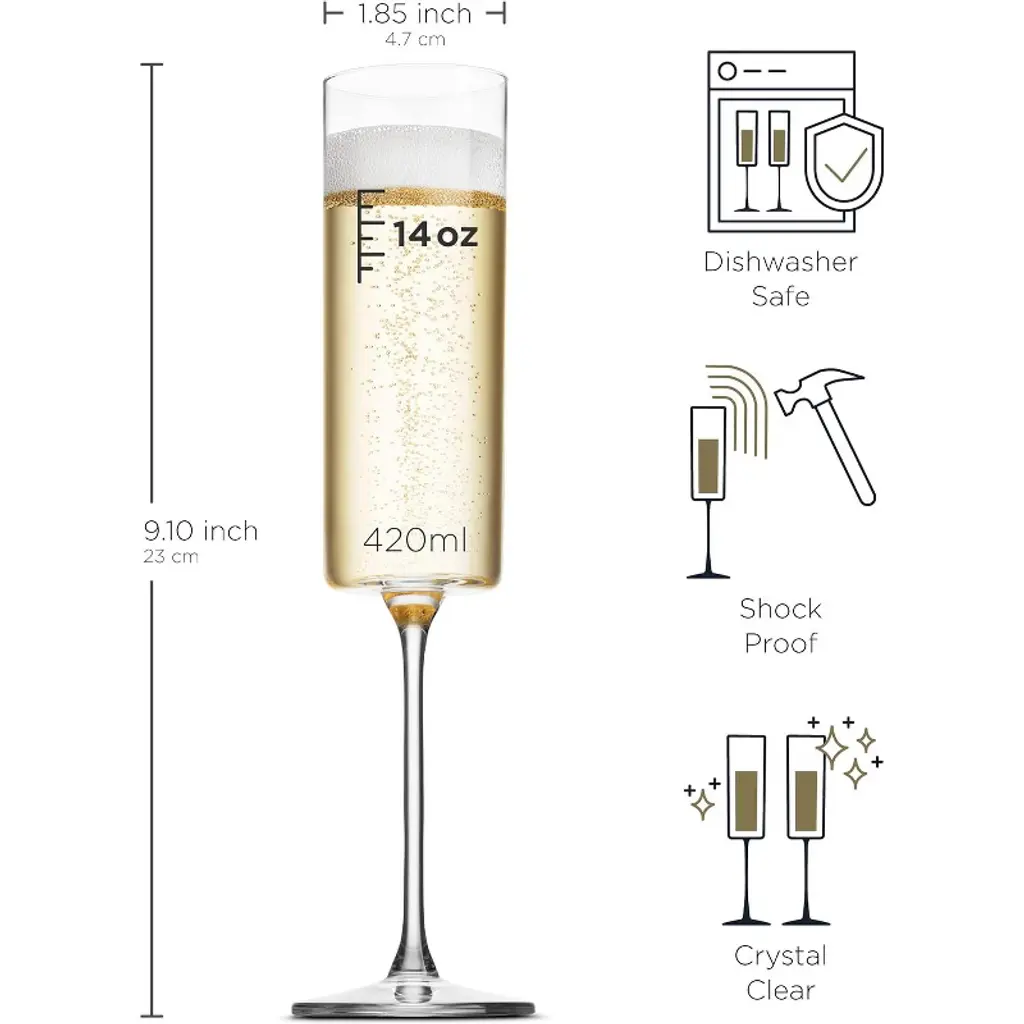 Raise a glass to modern style with the BENETI Square Champagne Glass Set—a fresh take on classic celebration. This set of four 6-ounce flutes is all about clean lines, bold angles, and clear, elegant glass that puts your bubbles in the spotlight. Each glass features a distinctive square bowl paired with a long, slim stem and sturdy base. The shape isn’t just for looks; it’s designed to keep your sparkling wine lively, capturing every effervescent stream and helping aromas unfold. With crystal-clear clarity, these glasses make every pour—golden, pink, or pale—look as good as it tastes. Safety and durability come built-in. Every glass is made from 100% lead-free glass, so you can sip and toast with confidence. At 9.10 inches tall and 1.85 inches wide, each flute feels light yet solid, perfect for parties, toasts, and everyday moments worth celebrating. Whether you’re marking a milestone or just enjoying bubbles on a Tuesday, BENETI’s square champagne glasses bring a touch of European craftsmanship and modern flair to your table—making every occasion feel a little more special.