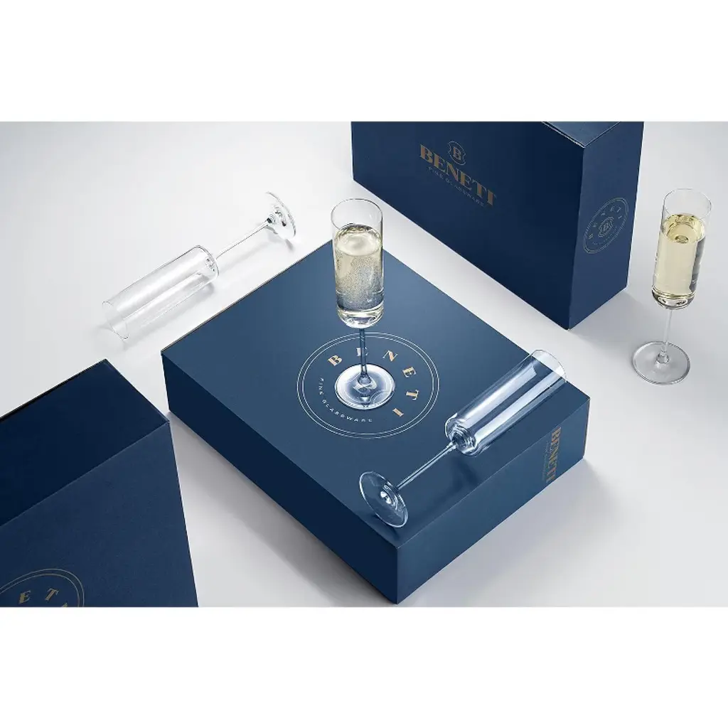 Beneti Square Champagne Glass Set Of 4, 6 Oz, Gift Ready, Dishwasher-safe