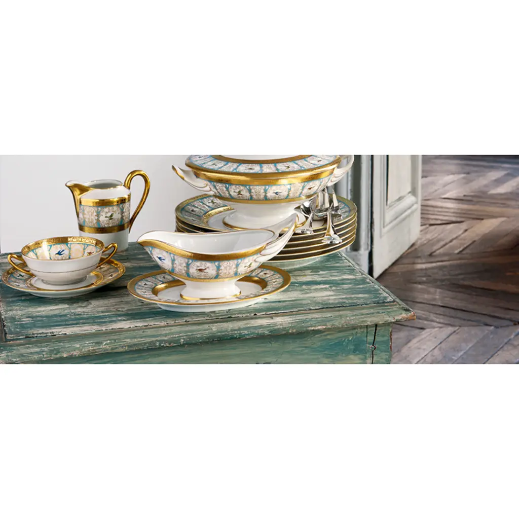 Created by the Manufacture de Sevres for the Popmpadour, it evoked her serenity, her deftness of touch, and her subtle demeanor. Highlighted with a bird motif throughout. In 1924, Robert Haviland collaborated with Camille Parlon to form Robert Haviland and C. Parlon. Robert Haviland was from a family with a long history in the porcelain business and was able to maintain the quality that his family was known for. The company produces its fine porcelain in Limoges, a French town well known for this coveted material.