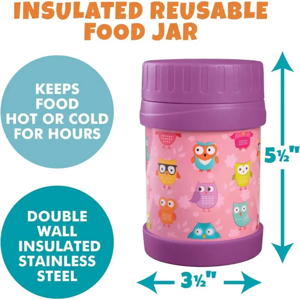 Bentology Owl Insulated Lunch Jar Thermos- Kids Back To School Leak-proof Storage Jar For Hot/cold Food, Soups, Liquids- Fits Most Lunch Boxes And Bag