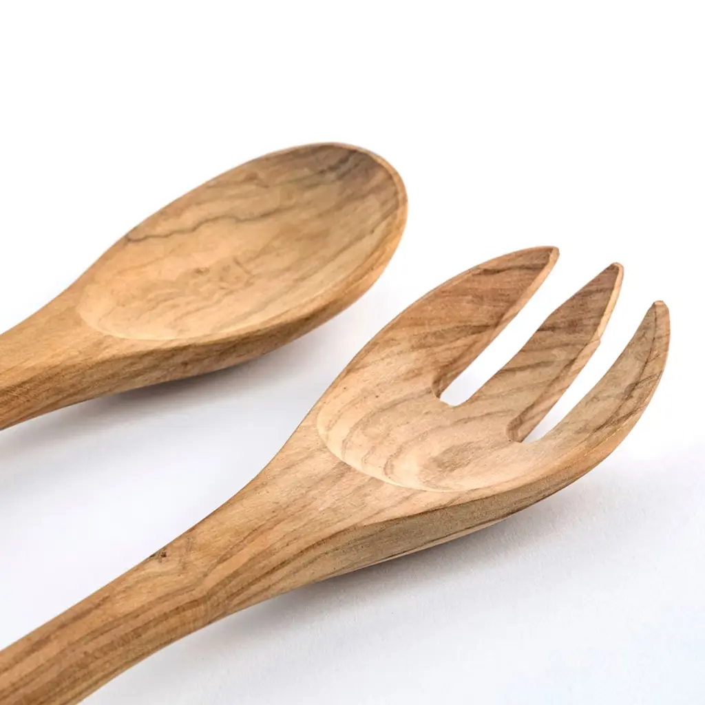 Berard France Olive Wood Handcrafted 2 Piece Salad Server Set