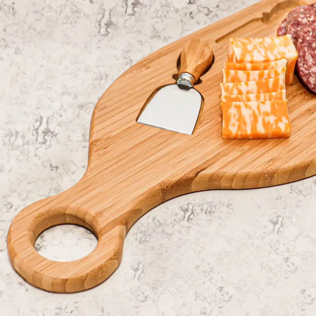 If you love to host, this set is made for you. Featuring a slide-out tray to hold the 3 included knives, this set helps you create the perfect meat and cheese platter. The beautiful bamboo adds variation so no two are alike.