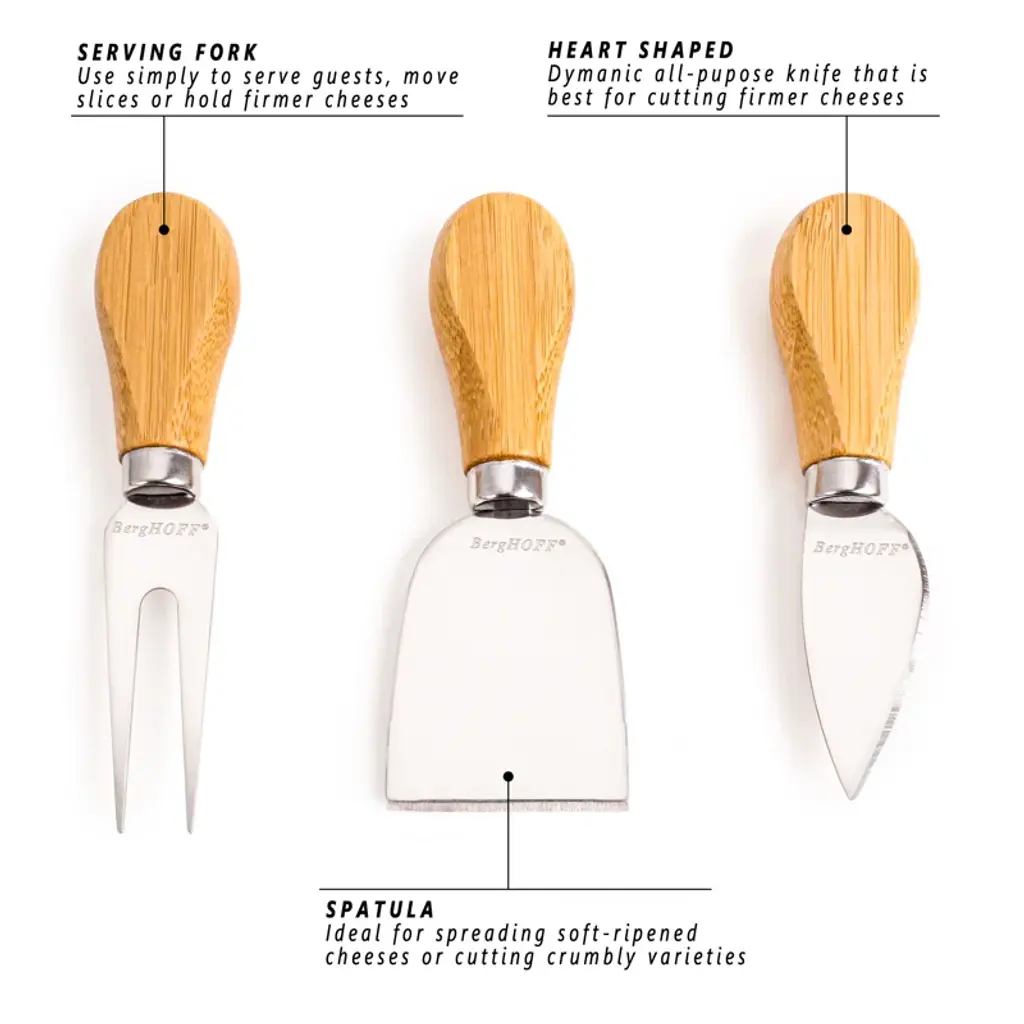 Berghoff 4Pc Paddle Cheese Board Set With 3Pc Cheese Knife Set, 22 X 7.9 X 1"