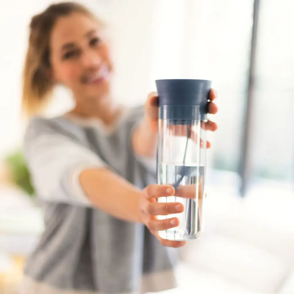 Whether you're looking for a convenient bottle to take to the gym or want a smart solution to stay hydrated at the office, this lightweight water bottle with push-to-drink system and useful strap looks right at home in any setting. The sealing mechanism doubles as a filter so you can easily add fruit, sliced condiments or herbs to your beverage for added flavor. Comes with a conveninet carrying strap for on-the-go! Easy cleanup with dishwasher safe!