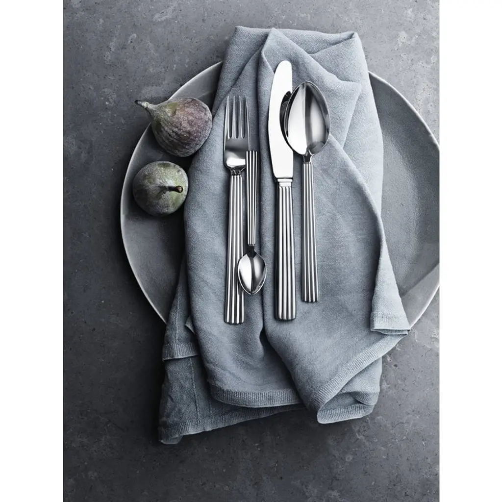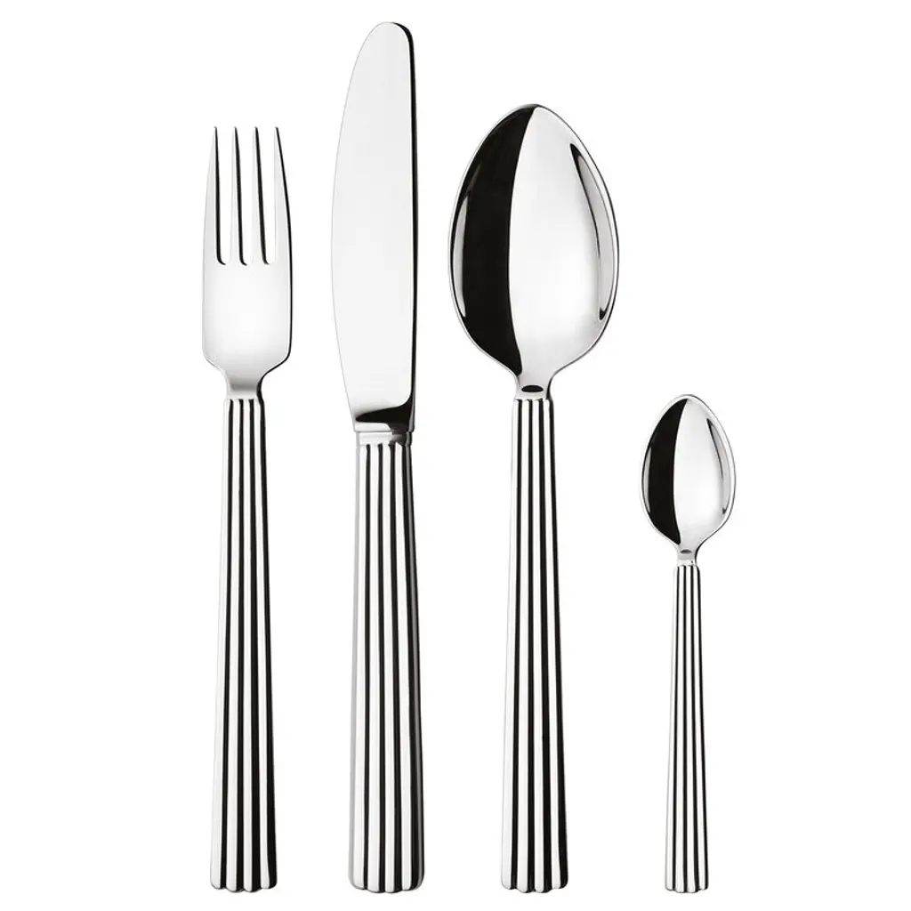 Bernadotte cutlery by Georg Jensen is characterized by the signature rifled lines of the collection as well as softly rounded handles. The polished stainless steel cutlery brings impeccable style to any table setting, be it formal or casual, a dinner party or a quick meal. The Bernadotte collection is a true Scandinavian design icon, and even today one of the most popular Georg Jensen collections. The elegant collection is named after its original designer, the Swedish Prince Sigvard Bernadotte. The first products in the collection were designed in the 1930s when the design world was heavily influenced by the functionalist movement. Characteristic to both the era and the designer, Bernadotte beautifully combines practicality to clean-lined elegance. Bernadotte is the perfect choice for all design enthusiasts who value quality and beautiful, timeless design.