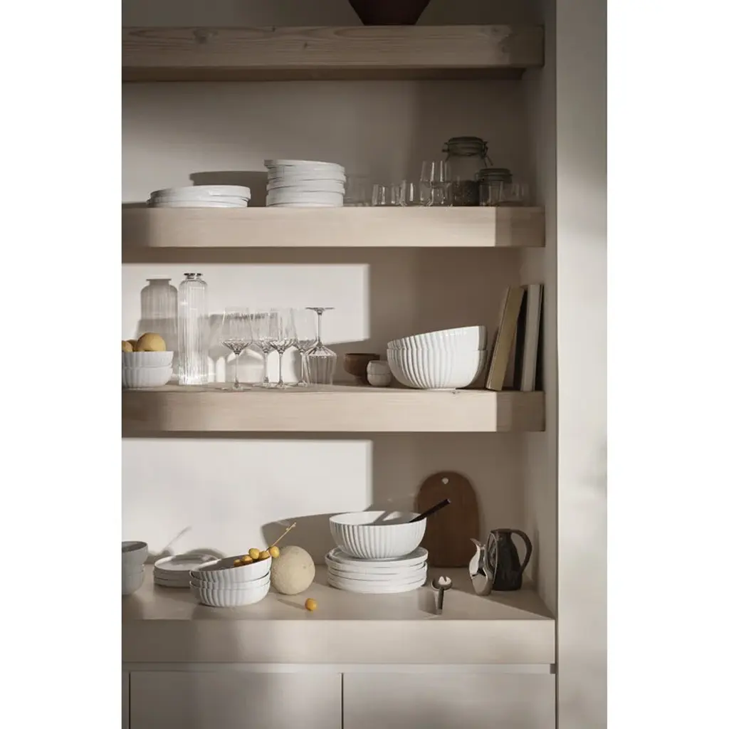 Georg Jensen's Bernadotte salad bowl offers a lovely way to present vibrant salads and serves equally well as a serving plate for warm side dishes. The salad bowl is made of pure white porcelain and decorated with delicate grooves that characterize the entire Bernadotte series. The Bernadotte collection is a true Scandinavian design icon, and even today one of the most popular Georg Jensen collections. The elegant collection is named after its original designer, the Swedish Prince Sigvard Bernadotte. The first products in the collection were designed in the 1930s when the design world was heavily influenced by the functionalist movement. Characteristic to both the era and the designer, Bernadotte beautifully combines practicality with clean-lined elegance. Bernadotte is the perfect choice for all design enthusiasts who value quality and beautiful, timeless design.