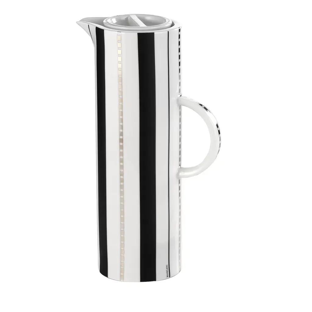 The iconic Bernadotte Thermo jug has been reimagined into this special edition version of the classic design. Retaining the signature shape and grooved design, the new jug comes in elegant midnight black. The piece features a sturdy stainless steel inner lining that will help keep contents warm or chilled for longer. The jug's lid comes with a handy button that doesn't require the top to be unscrewed when pouring beverages.